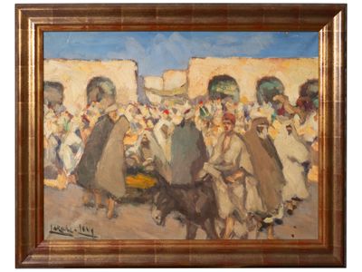 LAZARE-LÉVY (1867-1933). Marché orientaliste Huile sur toile…