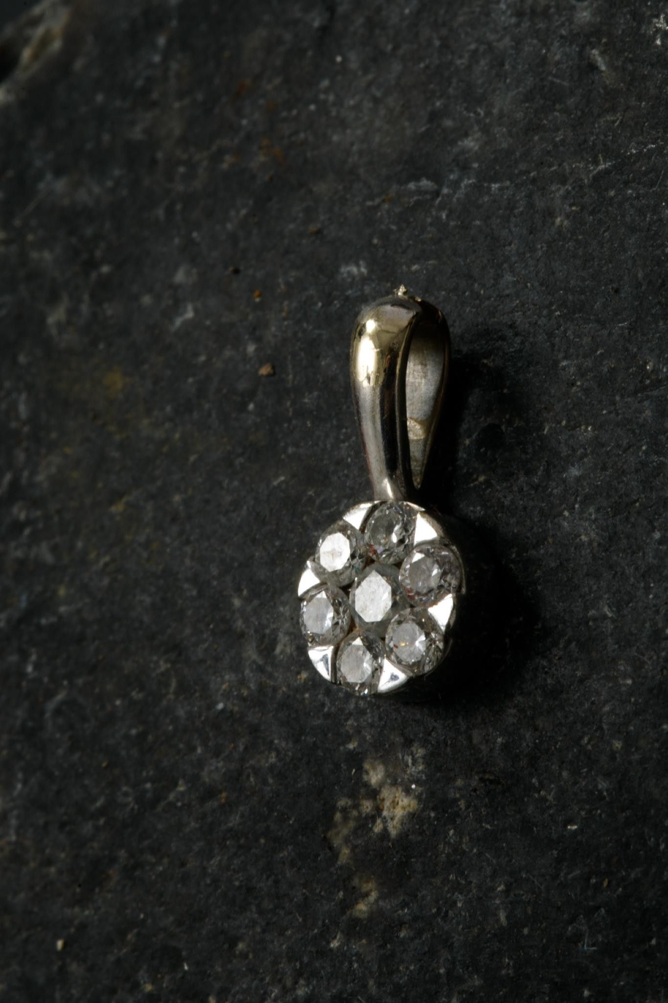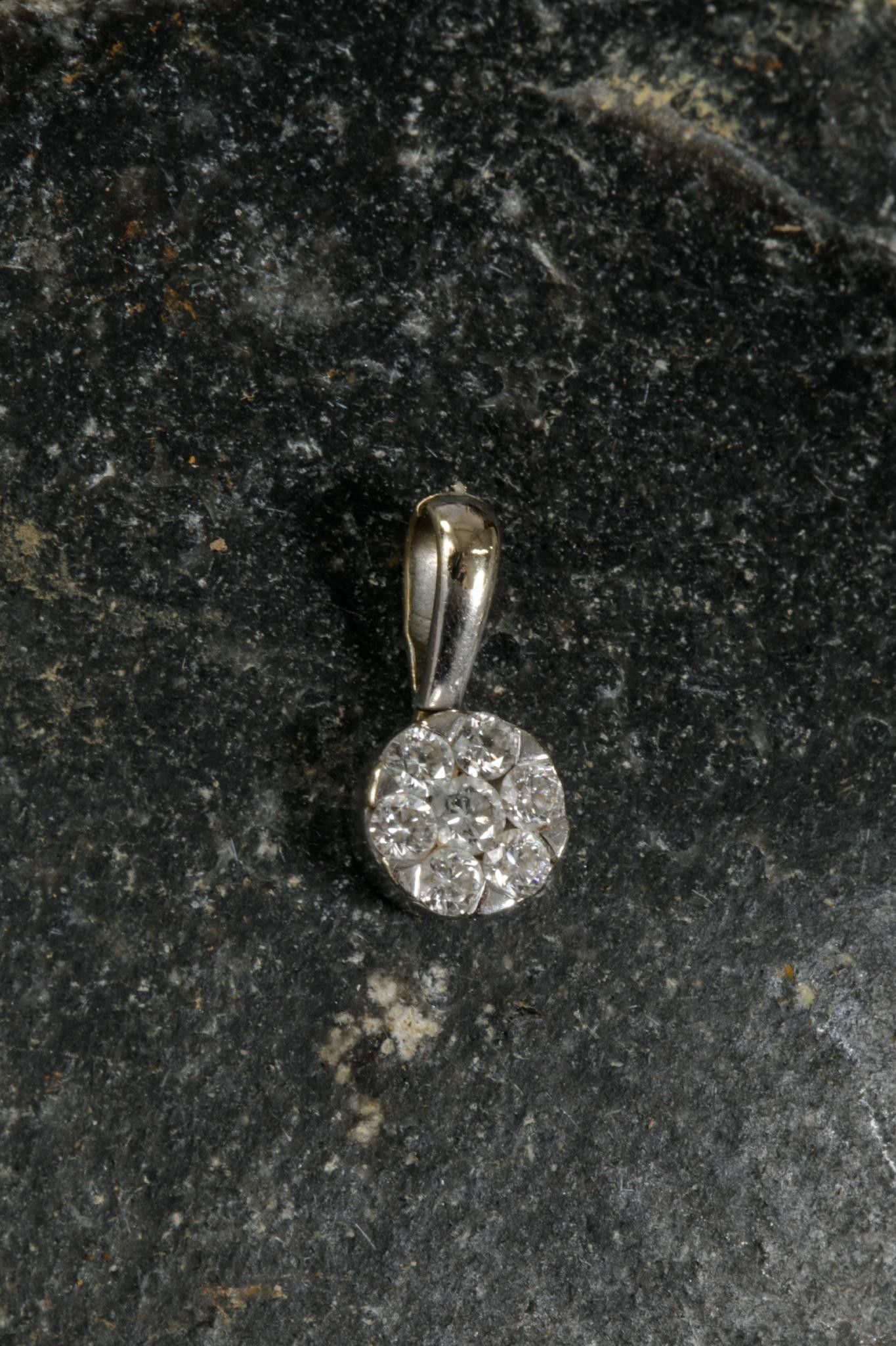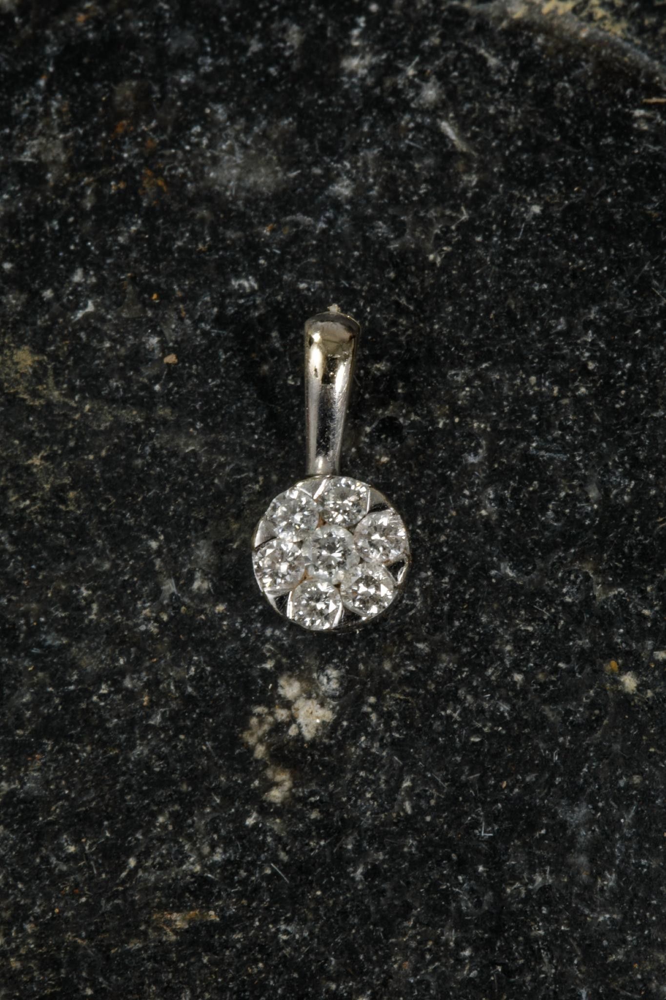 Pendentif en or gris 750 millièmes la bélière fendue retenant un rond mobile pavé de brillants