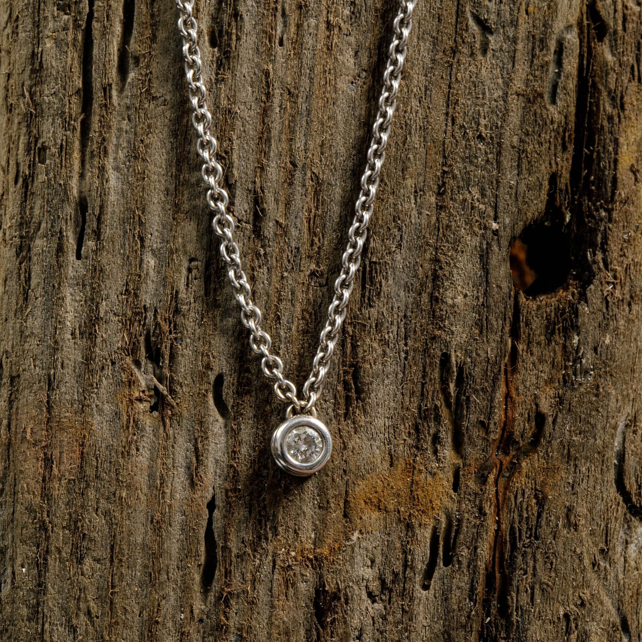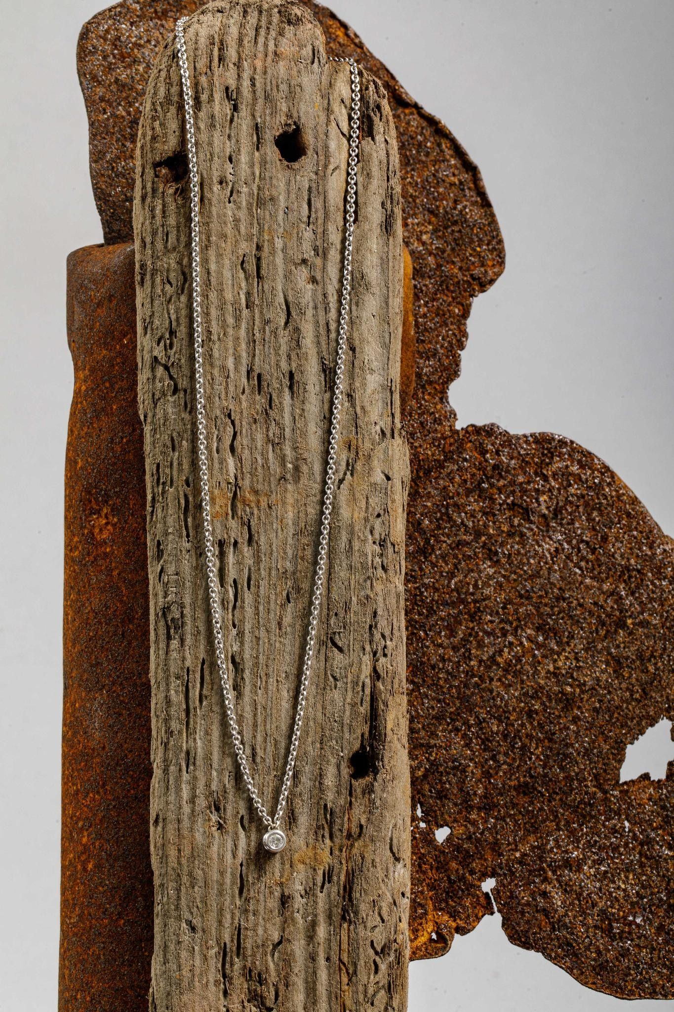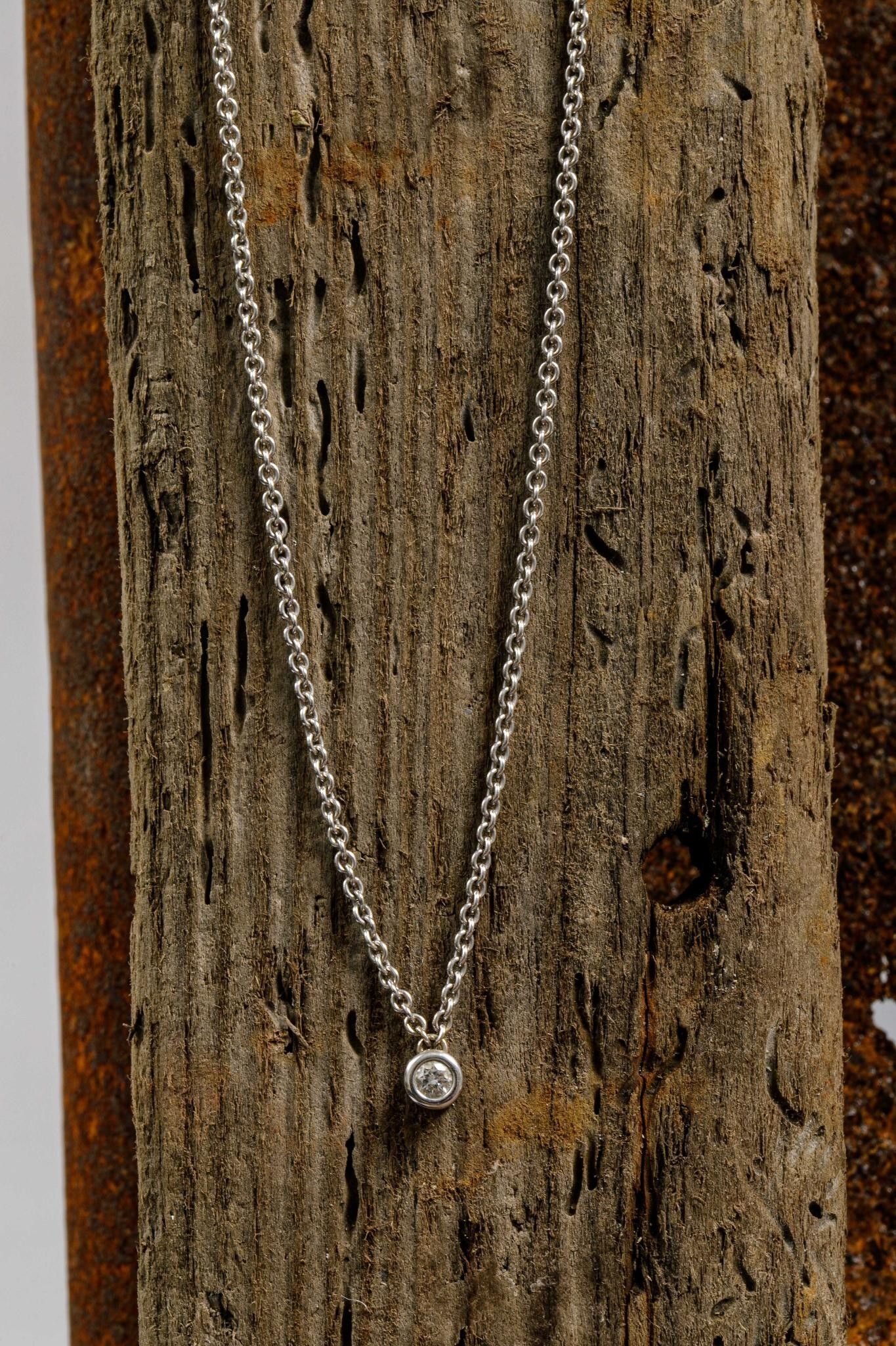 Chaine de cou en or gris (poinçon tête d'aigle) retenant un diamant calibrant environ 0,10 carat fermoir mousqueton réglable