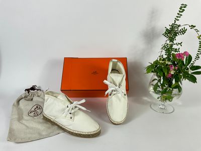 Hermès Paris Homme Paire d’espadrilles en toile blanc légère…