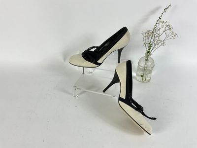Chanel Une paire d’escarpins bicolore en toile noir et blanc…