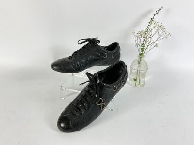 Christian Dior Une paire de sneakers en cuir surpiqué noir à…