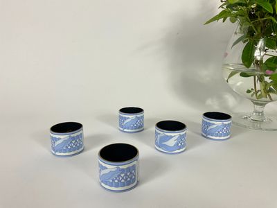 Hermès Paris Lot de cinq ronds de serviettes émaillés en ble…