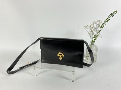 Céline Petit sac à main en cuir noir à boucle pivotante en m…