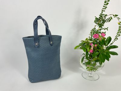 Hermès Paris Ahmedabad Petit sac seau en cuir tressé bleu, l…