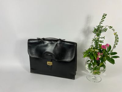 Hermès Paris Cartable en box noir à fermoir en métal doré, s…