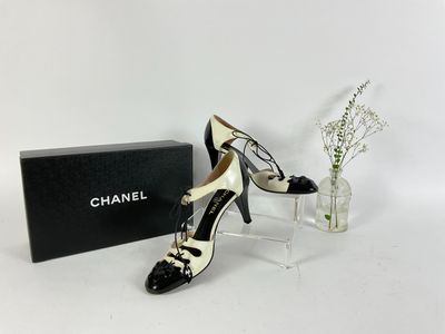 Chanel Une paire de Salomé bicolore en cuir beige et noir à …