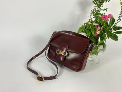 Céline vers 1970 Sac à main en cuir bordeaux, fermoir nœud e…