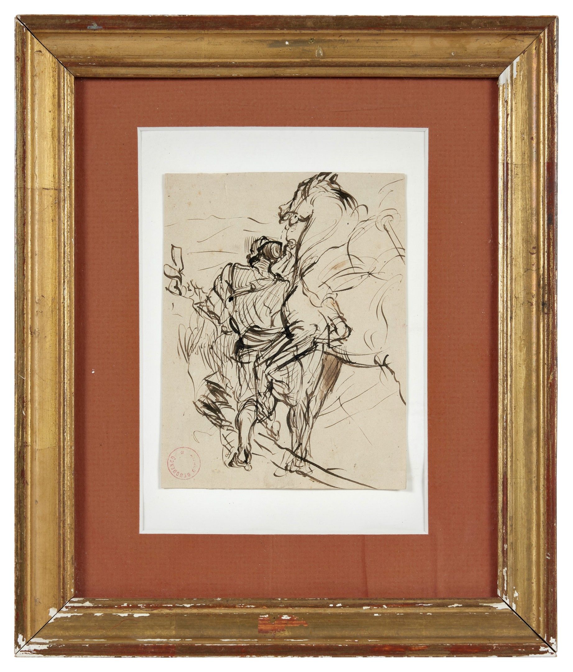 Alfred DEHODENCQ (1822-1882) Le cavalier arabe Dessin à la p…