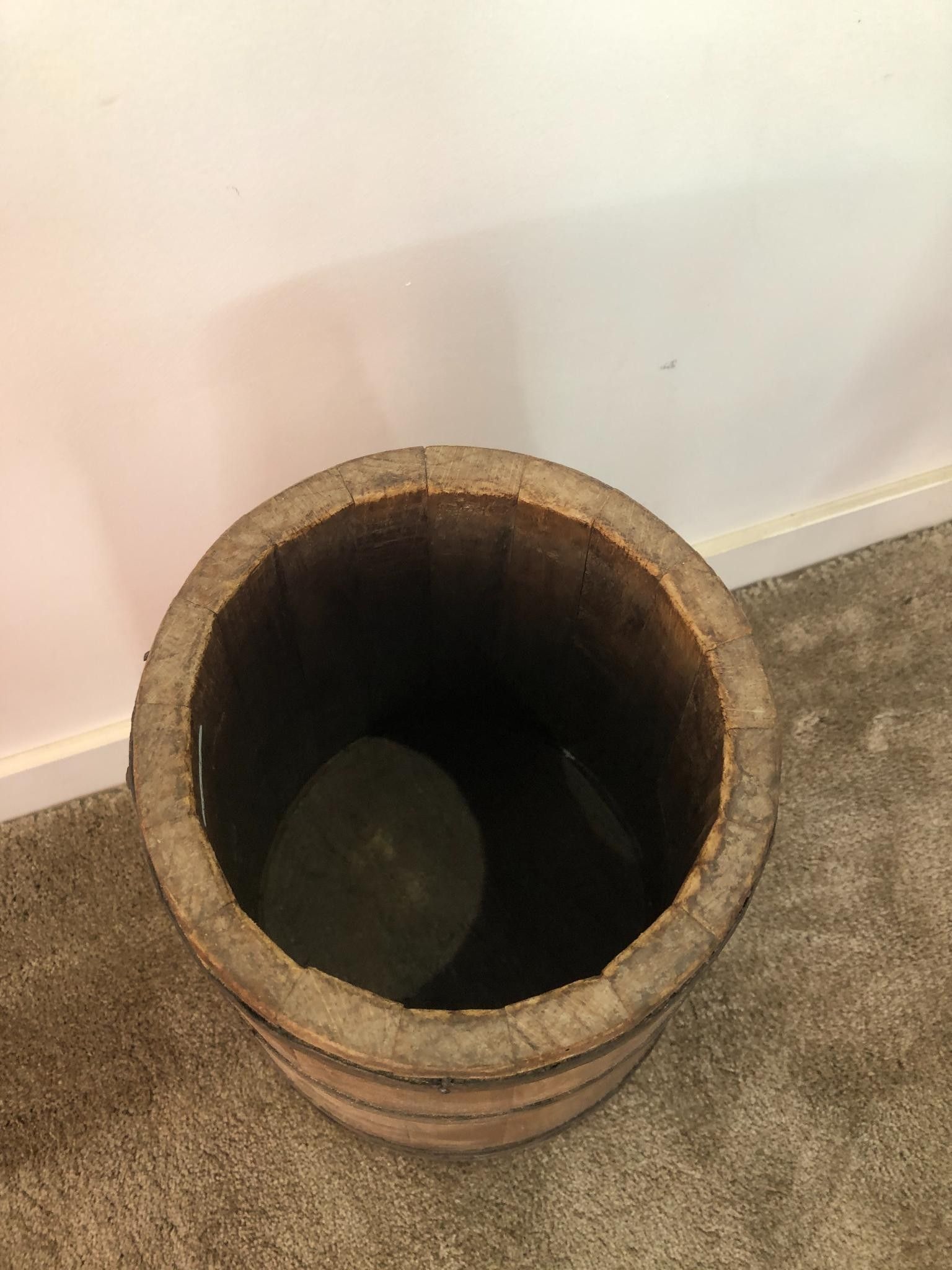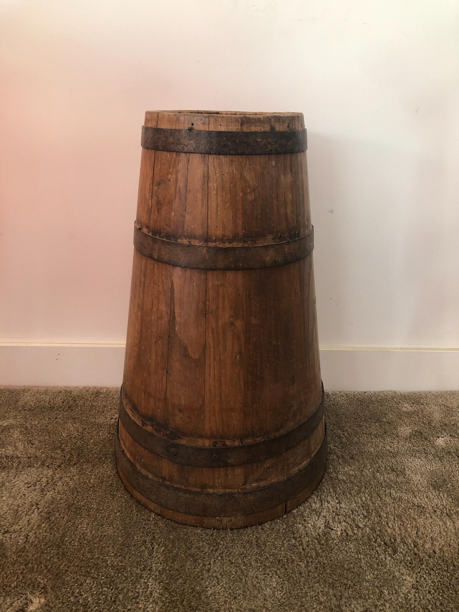 Baratte en bois et cerclage en métal. Haut. 52 cm.