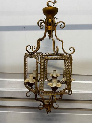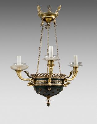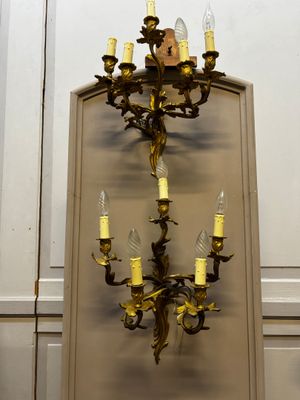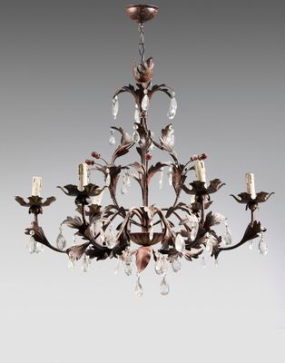 Luminaires anciens et vintage, décoratifs ou fonctionnels : lustres en cristal taillé ou en bronze doré, appliques murales, lampadaires articulés, lampes de bureau, suspensions design ou plafonniers modernistes. Ces objets d’éclairage sont issus de courants classiques, art déco, industriels, mid-century ou space age, fabriqués en laiton, opaline, verre soufflé, métal émaillé ou plastique moulé.