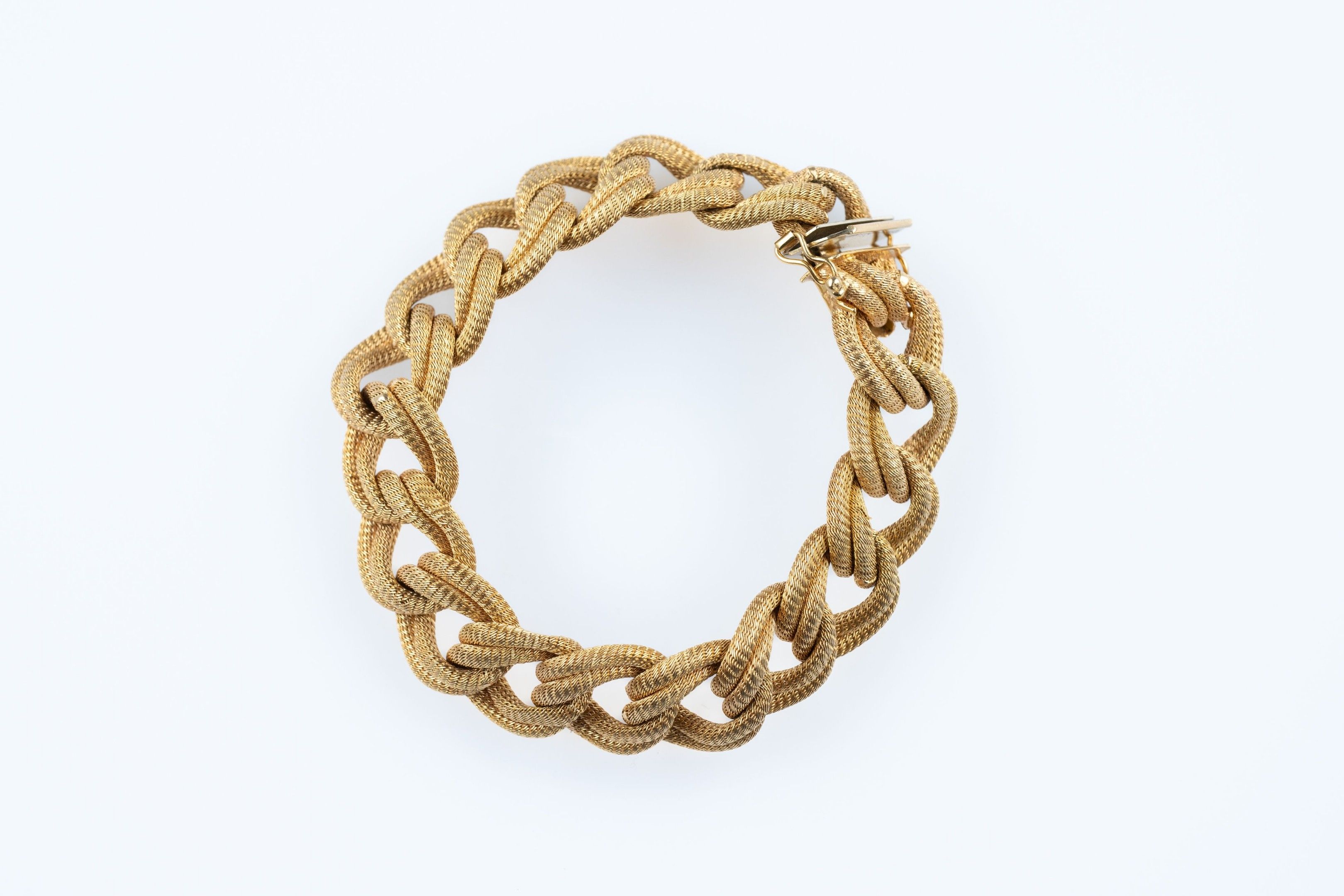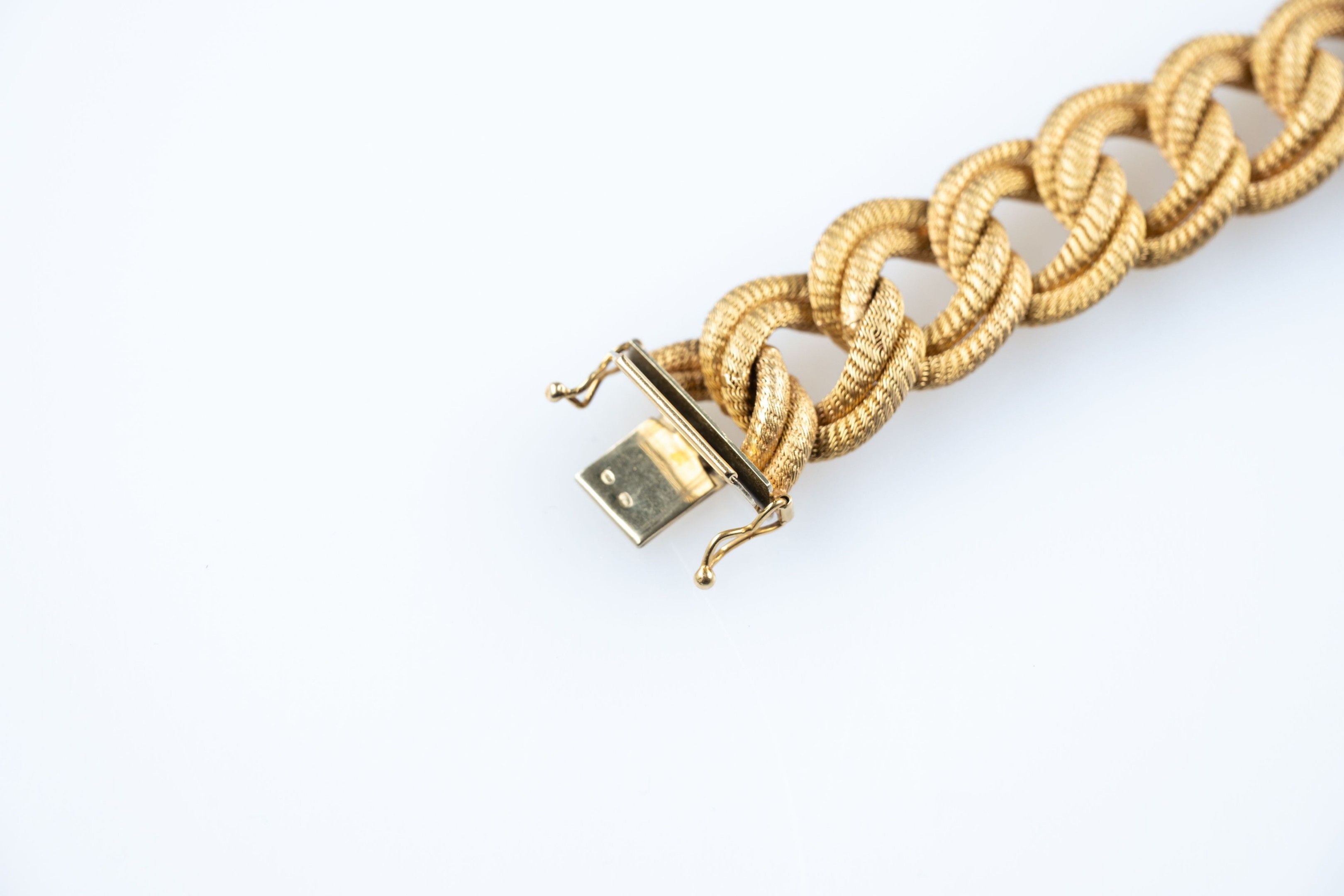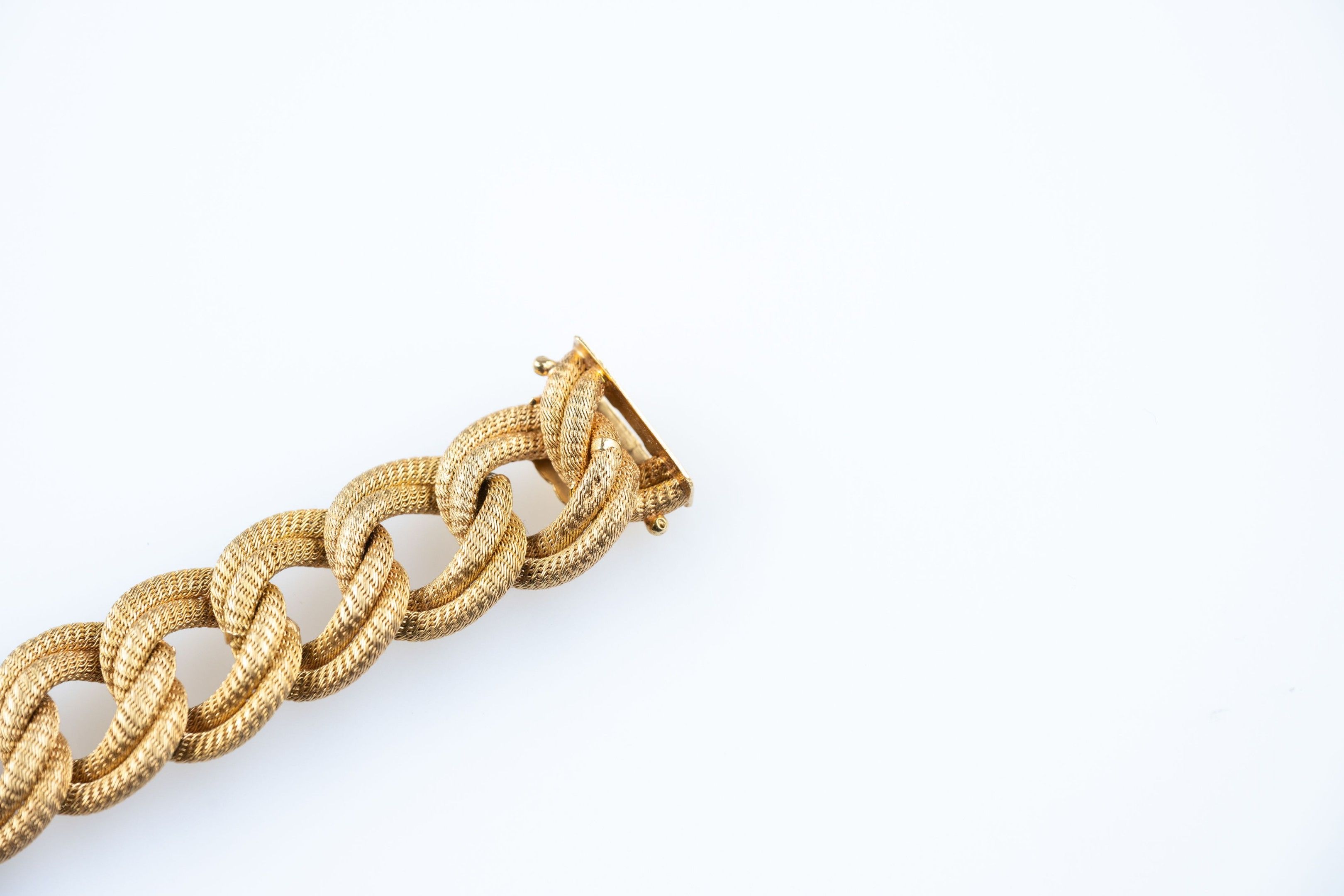 Bracelet en or jaune 18k (750 millièmes) à importante maille gourmette en résille doublée.