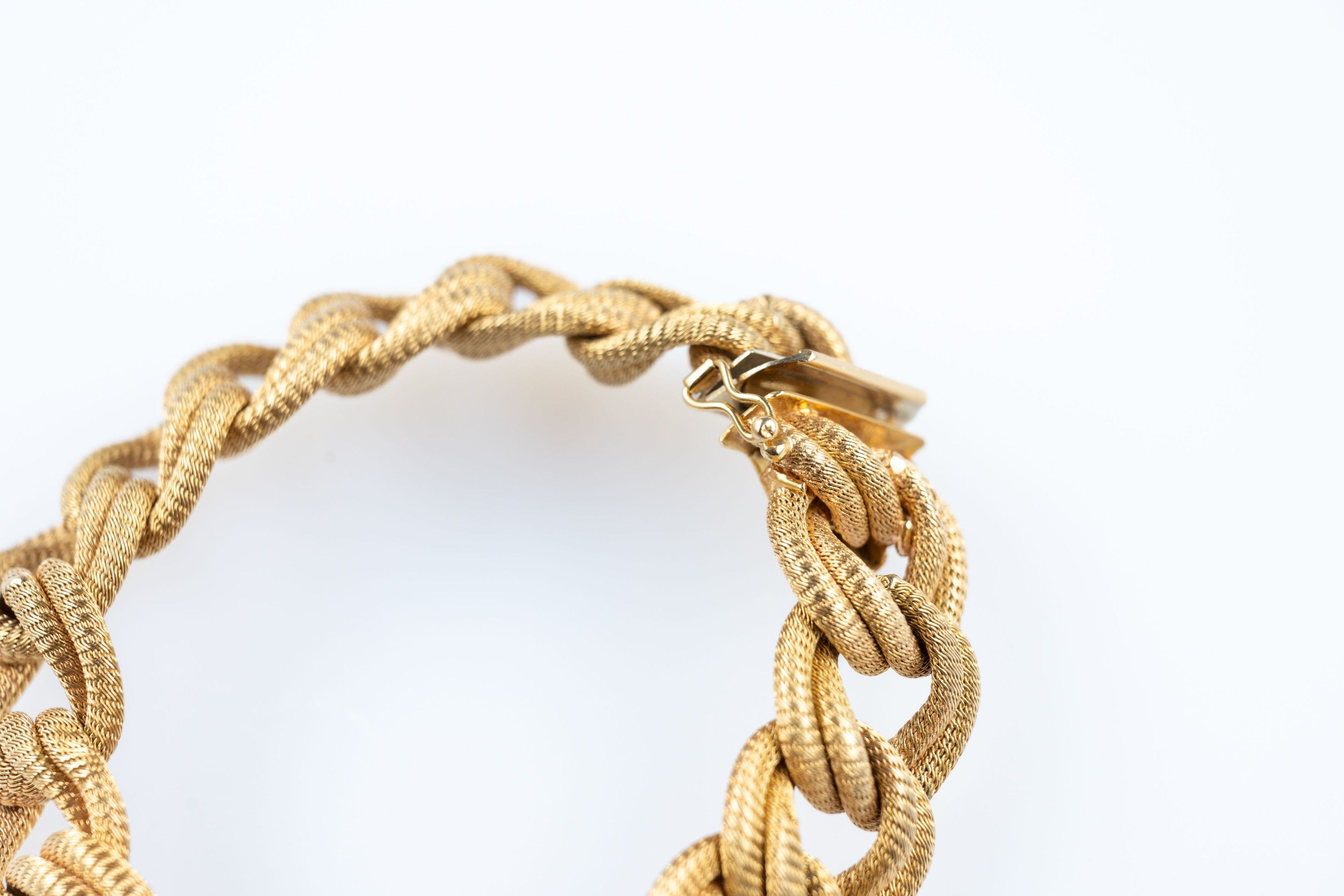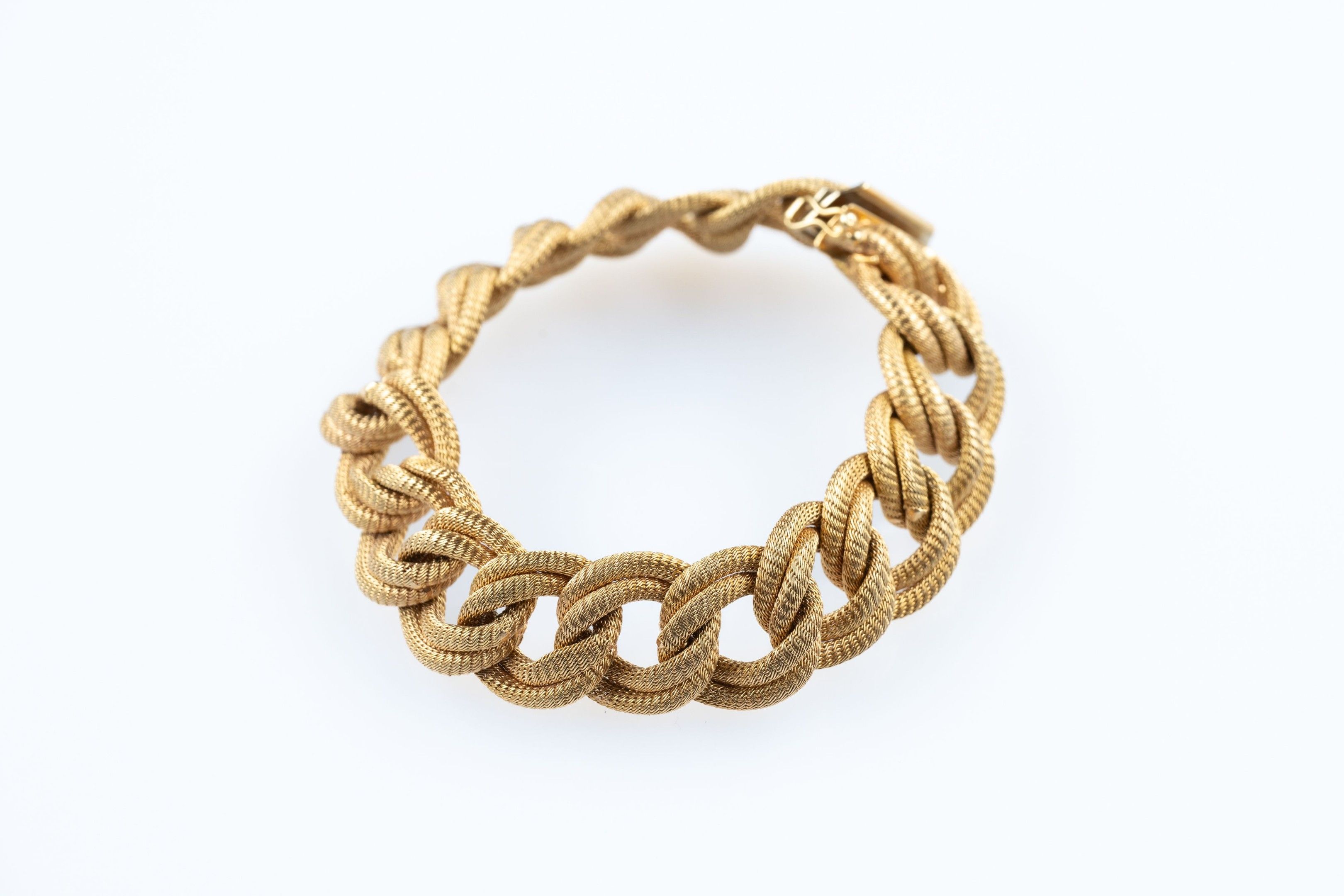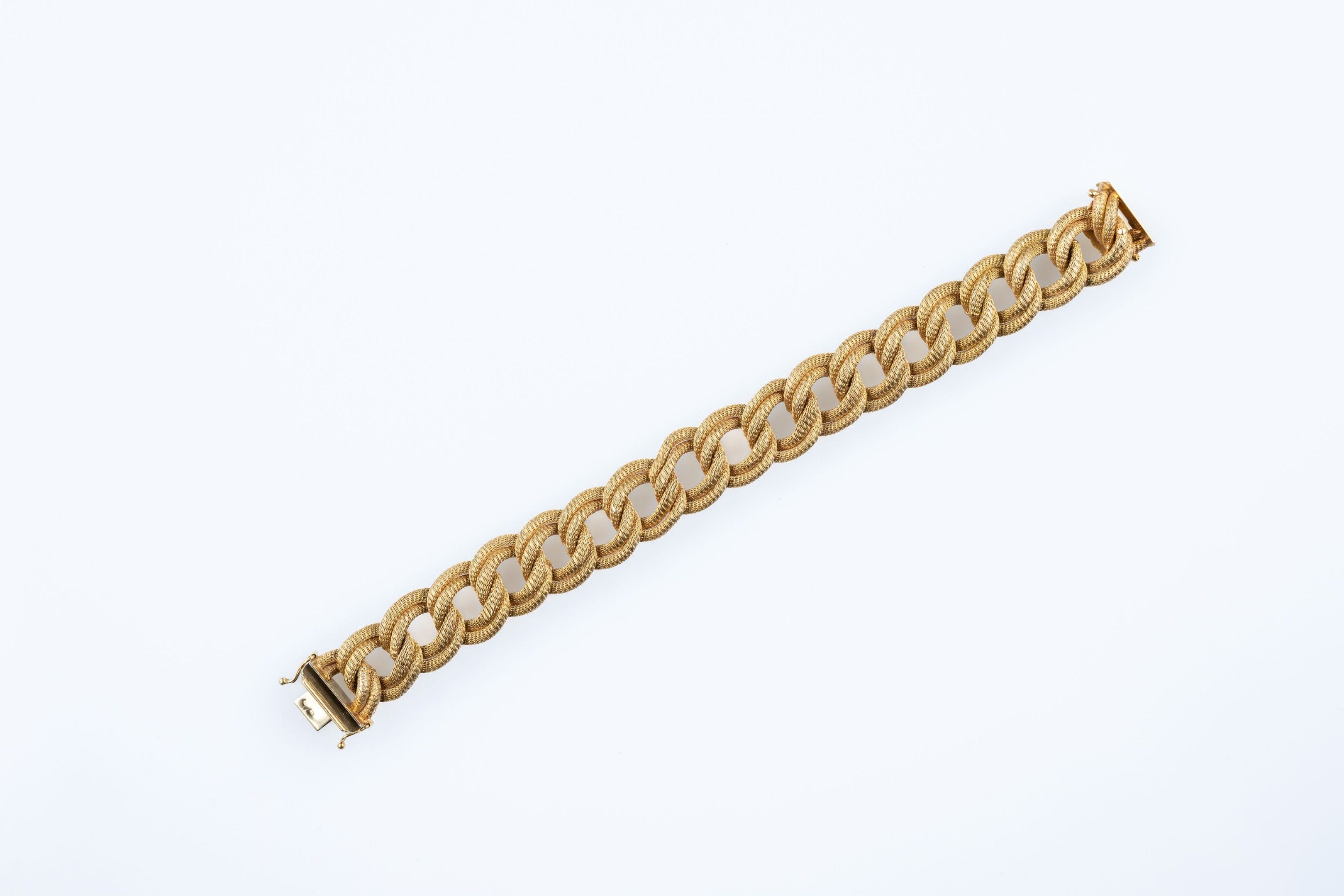 Bracelet en or jaune 18k (750 millièmes) à importante maille gourmette en résille doublée.