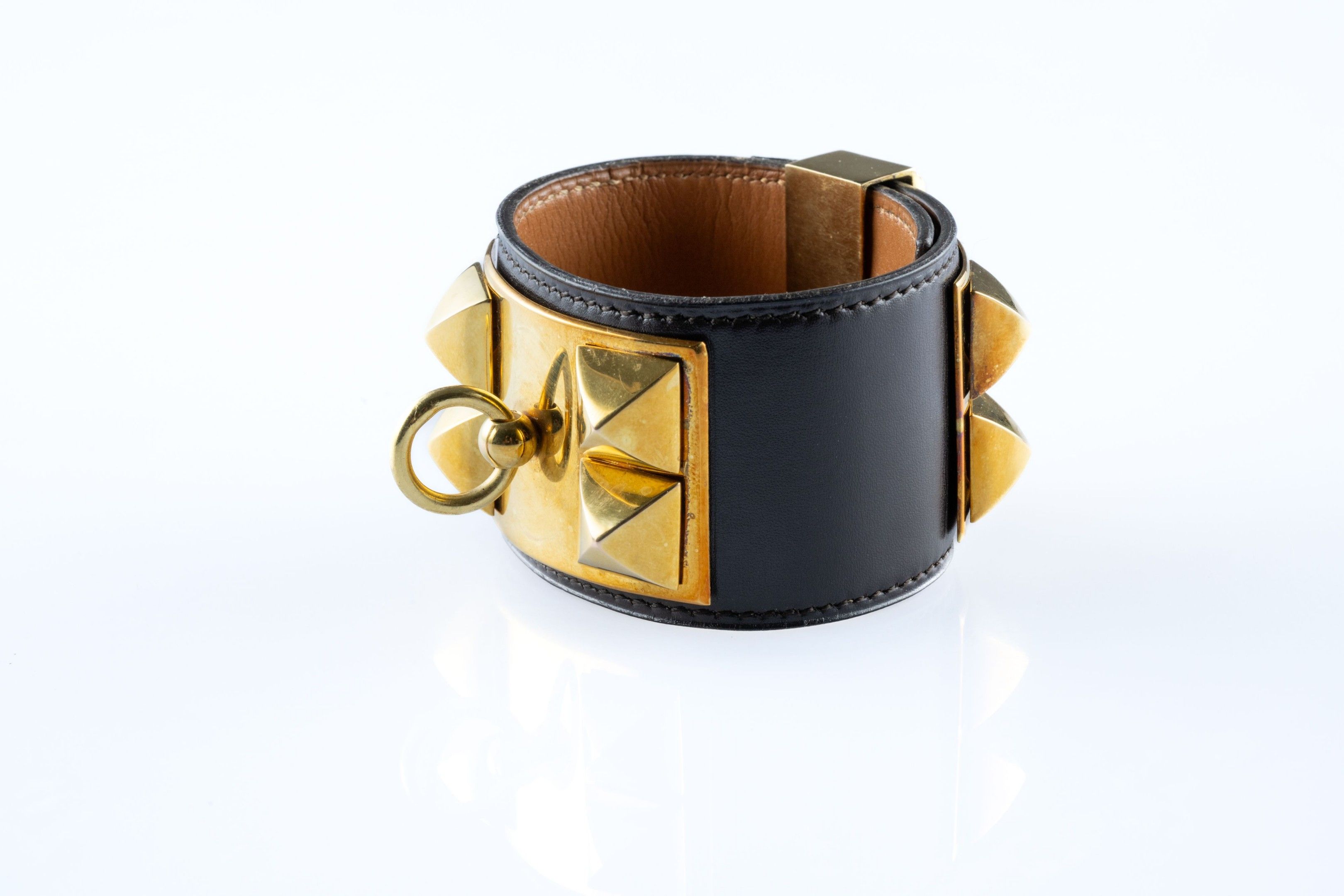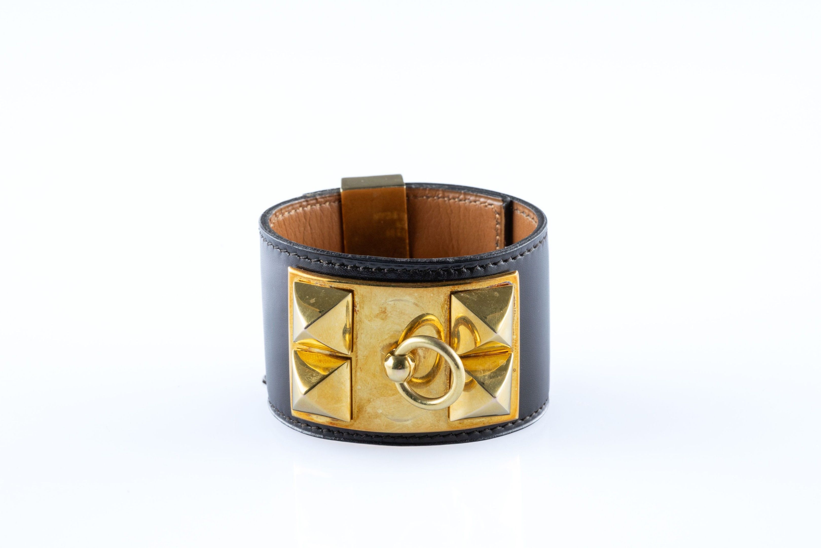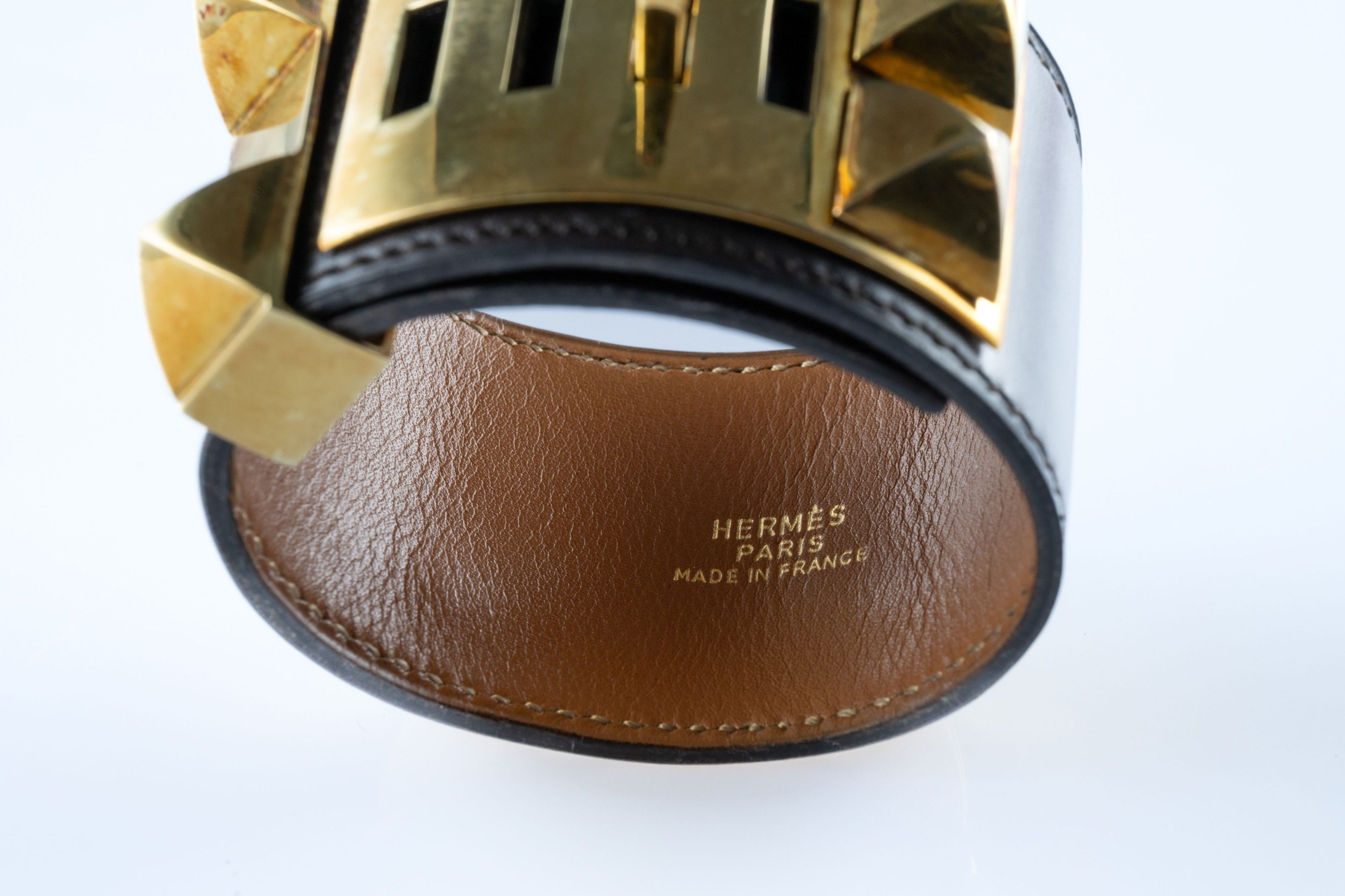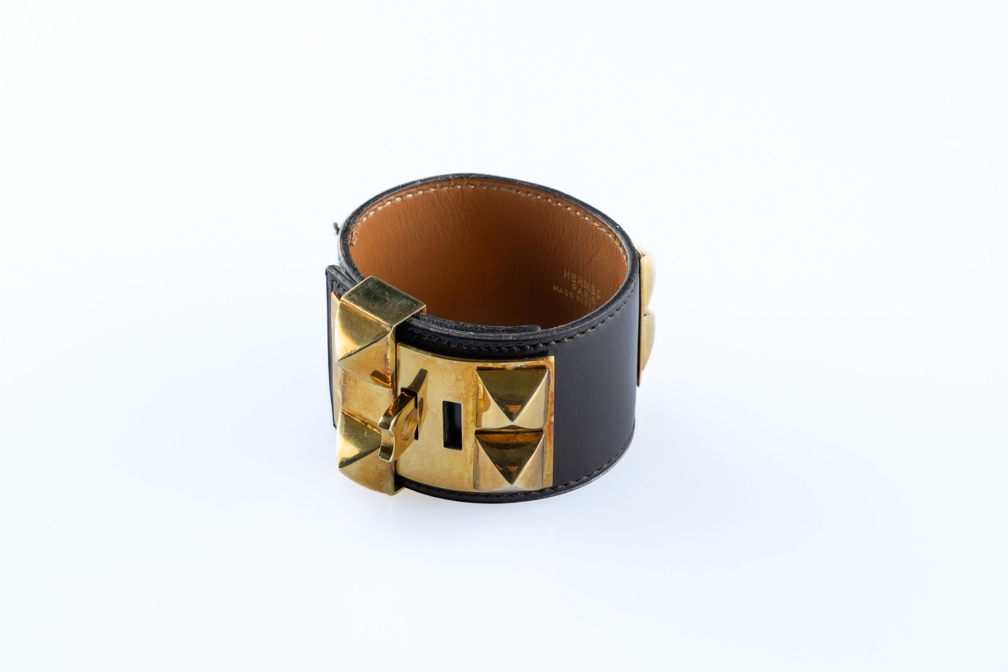 HERMES. Bracelet modèle "Collier de chien" en veau box brun …