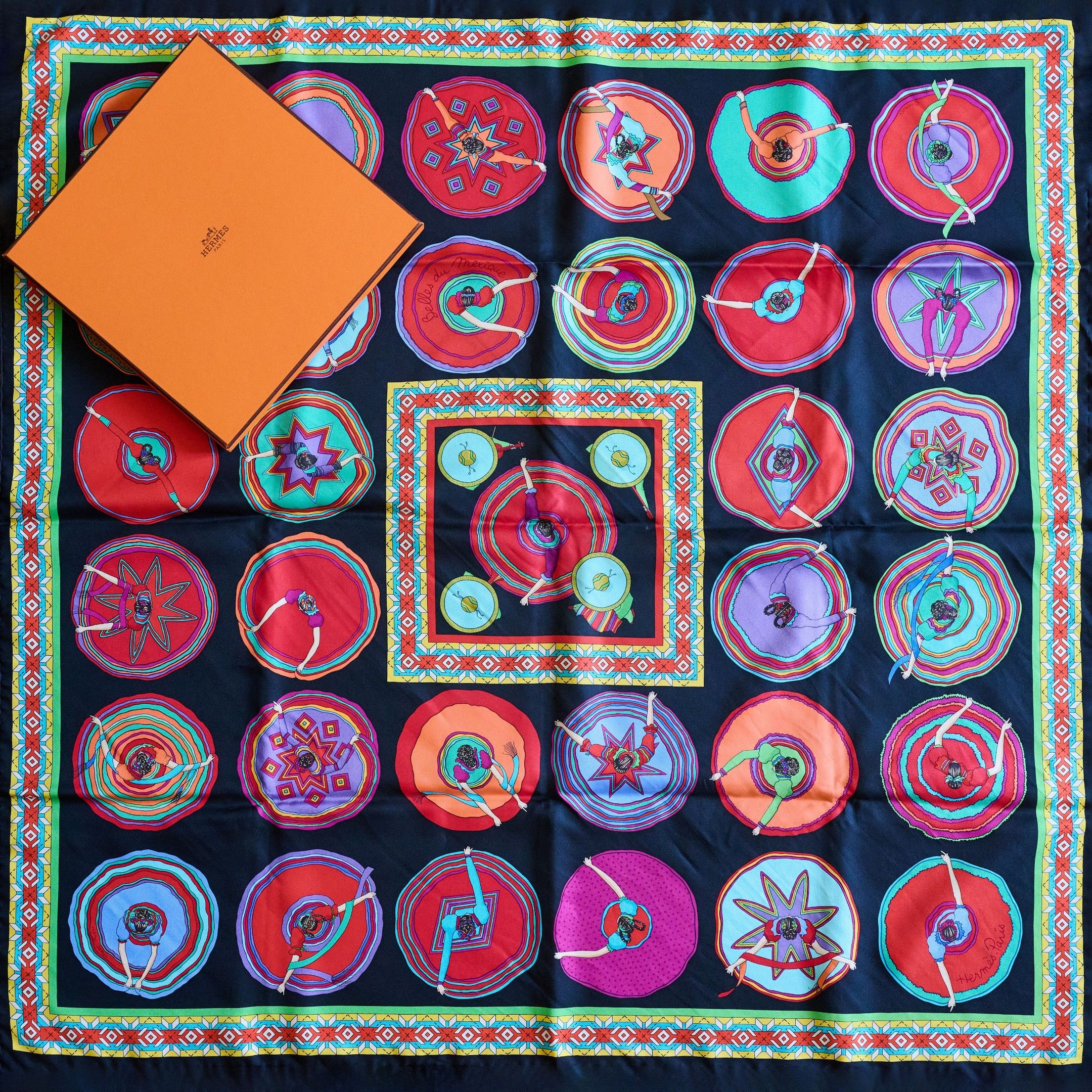 HERMES. Carré en soie modèle "Belles du Mexique" à décor pol…