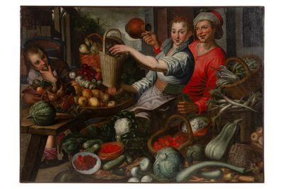 École anversoise du XVIe siècle Scène de marché aux légumes …