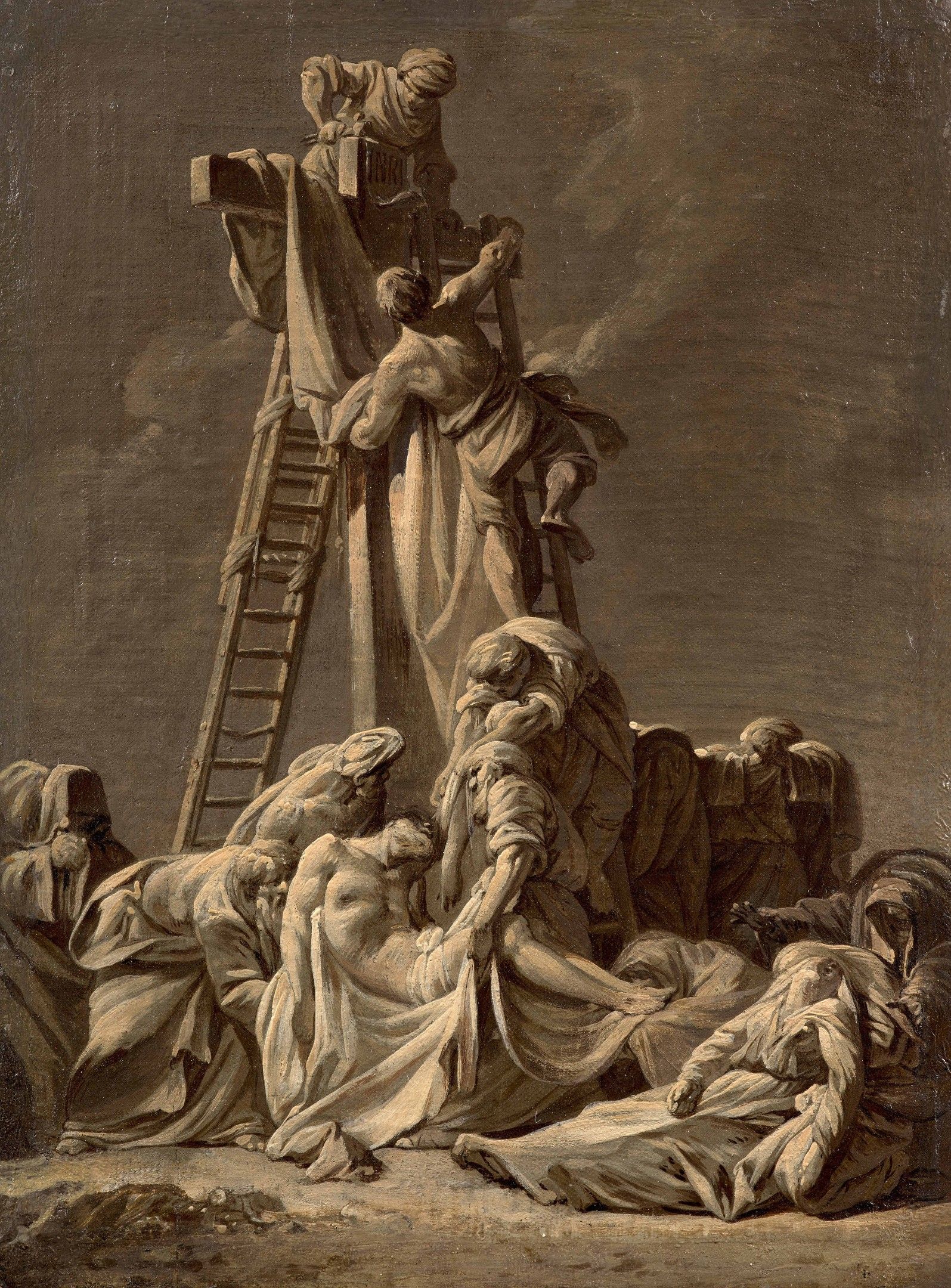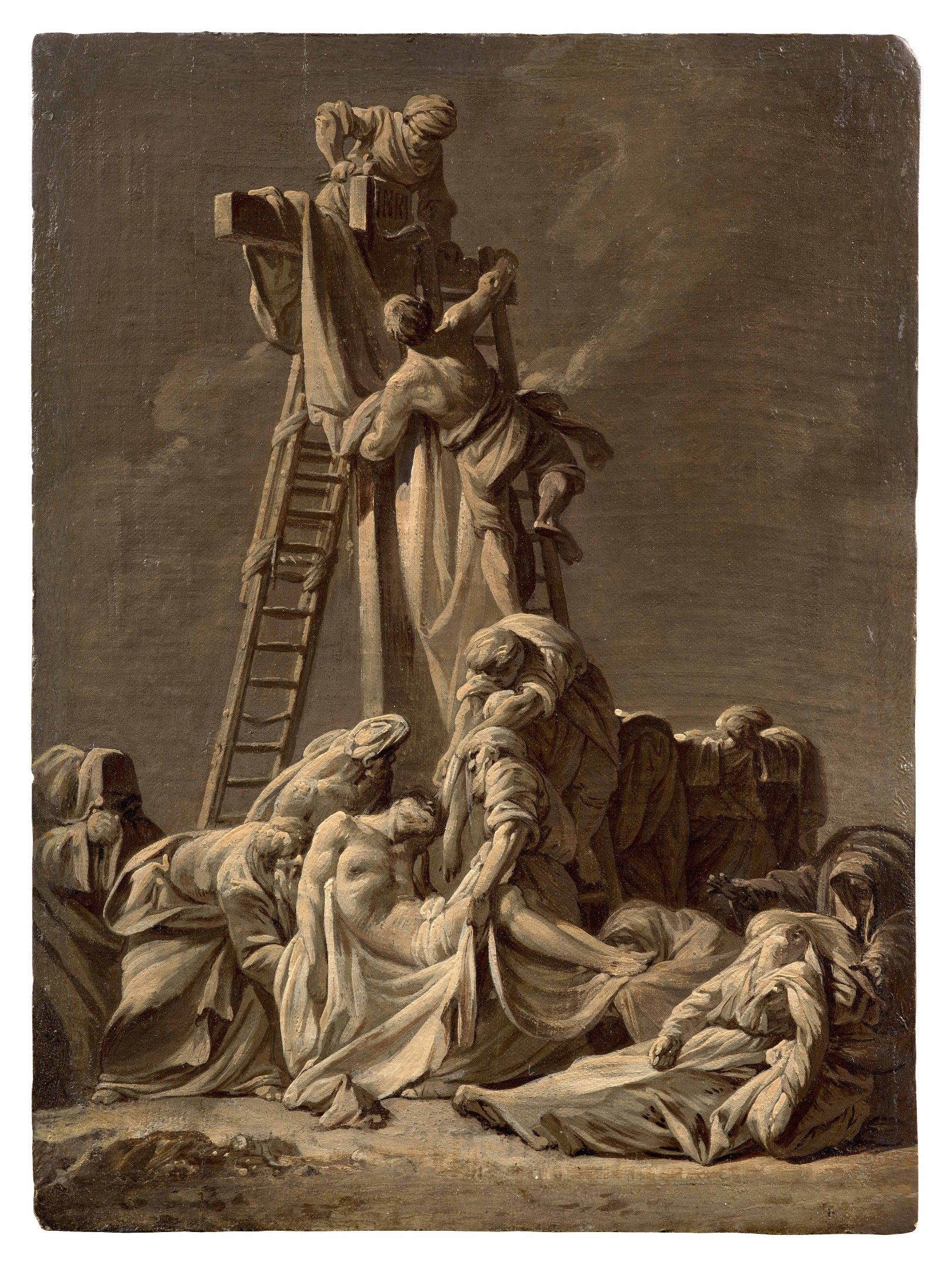 Descent from the Cross, oil on canvas laid down on panel, by J.-J. Bachelier