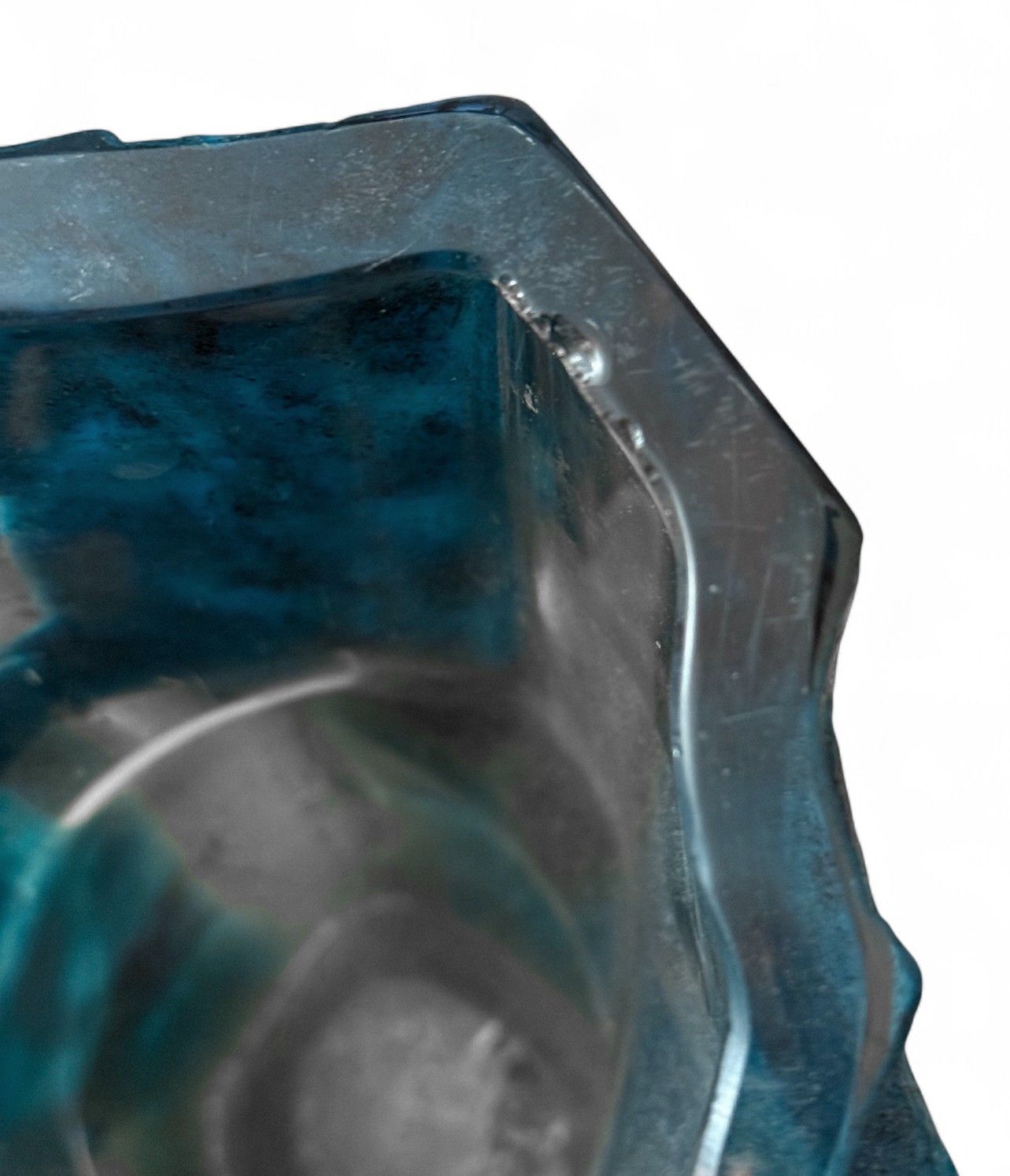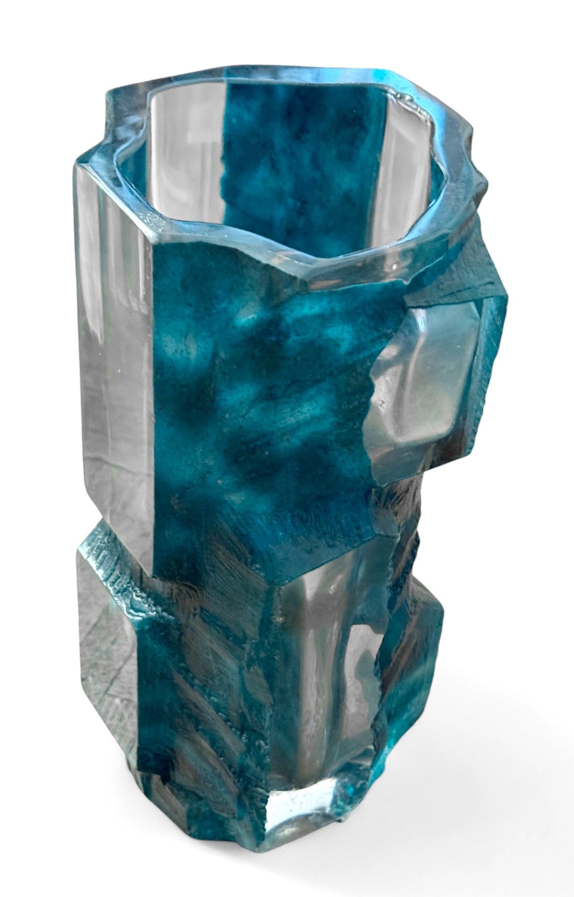 DAUM, France-César BALDACCINI dit CÉSAR (1921- 1998). VASE Argos, épreuve en cristal épais moulé à patine externe bleu turquoise. Modèle crée en 1969. Signé Daum France. (Petits éclats). H. 28,5 cm