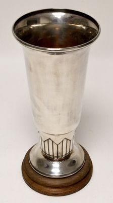 Grande COUPE en argent sur socle en bois, de forme tulipe, l…