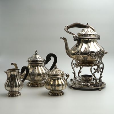 SERVICE A THE comprenant SAMOVAR, THEIERE, SUCRIER et POT A …