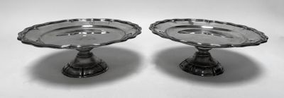 Paire de PRESENTOIRS à GATEAUX sur piédouche en argent, à cô…