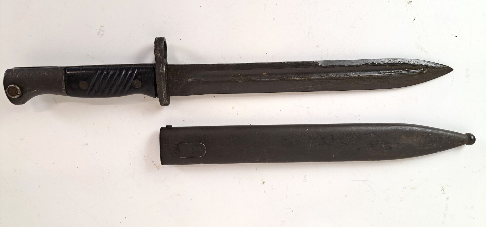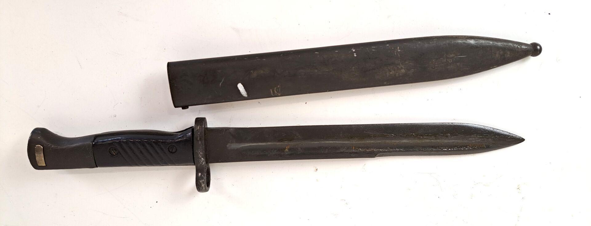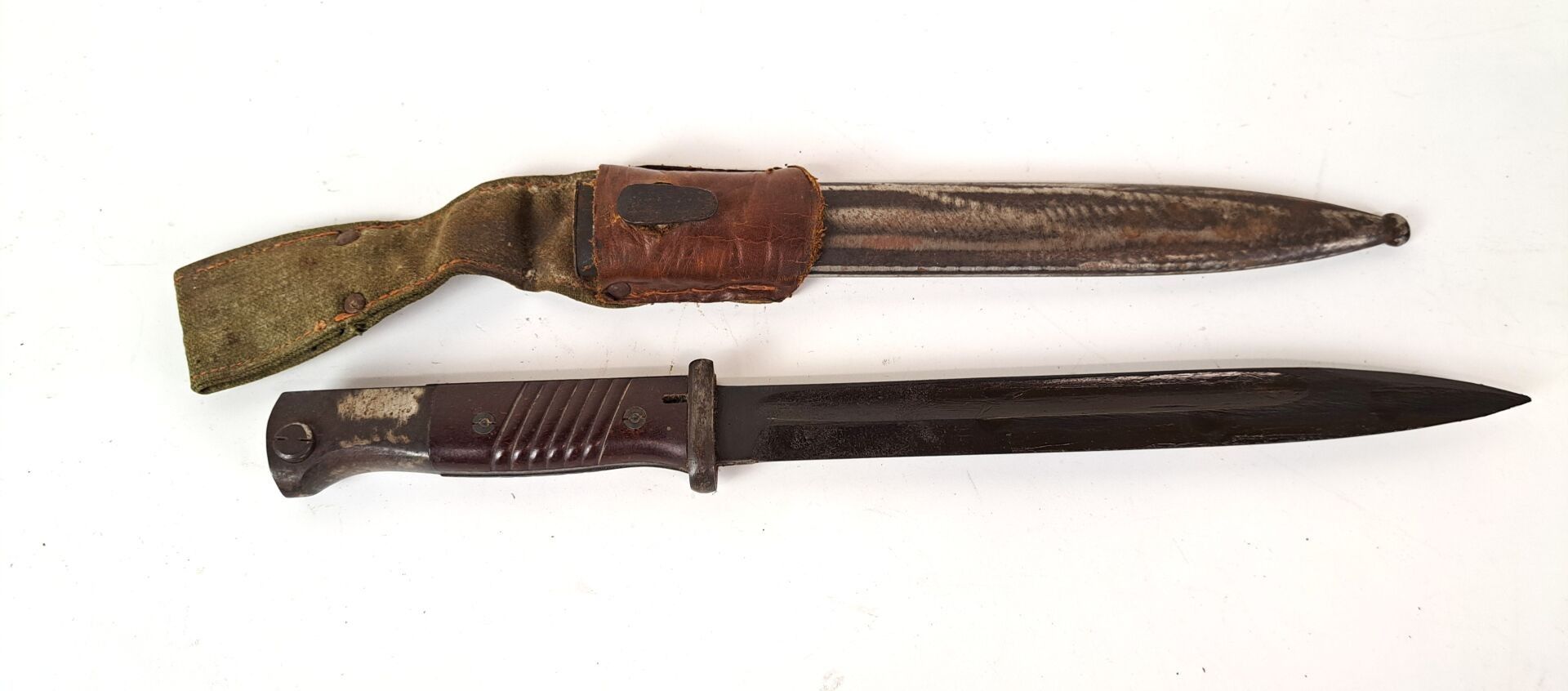 Lot de deux baïonnettes dont une Mauser israélienne et une 84/98 3ème modèle, dans leur fourreau Etat 2