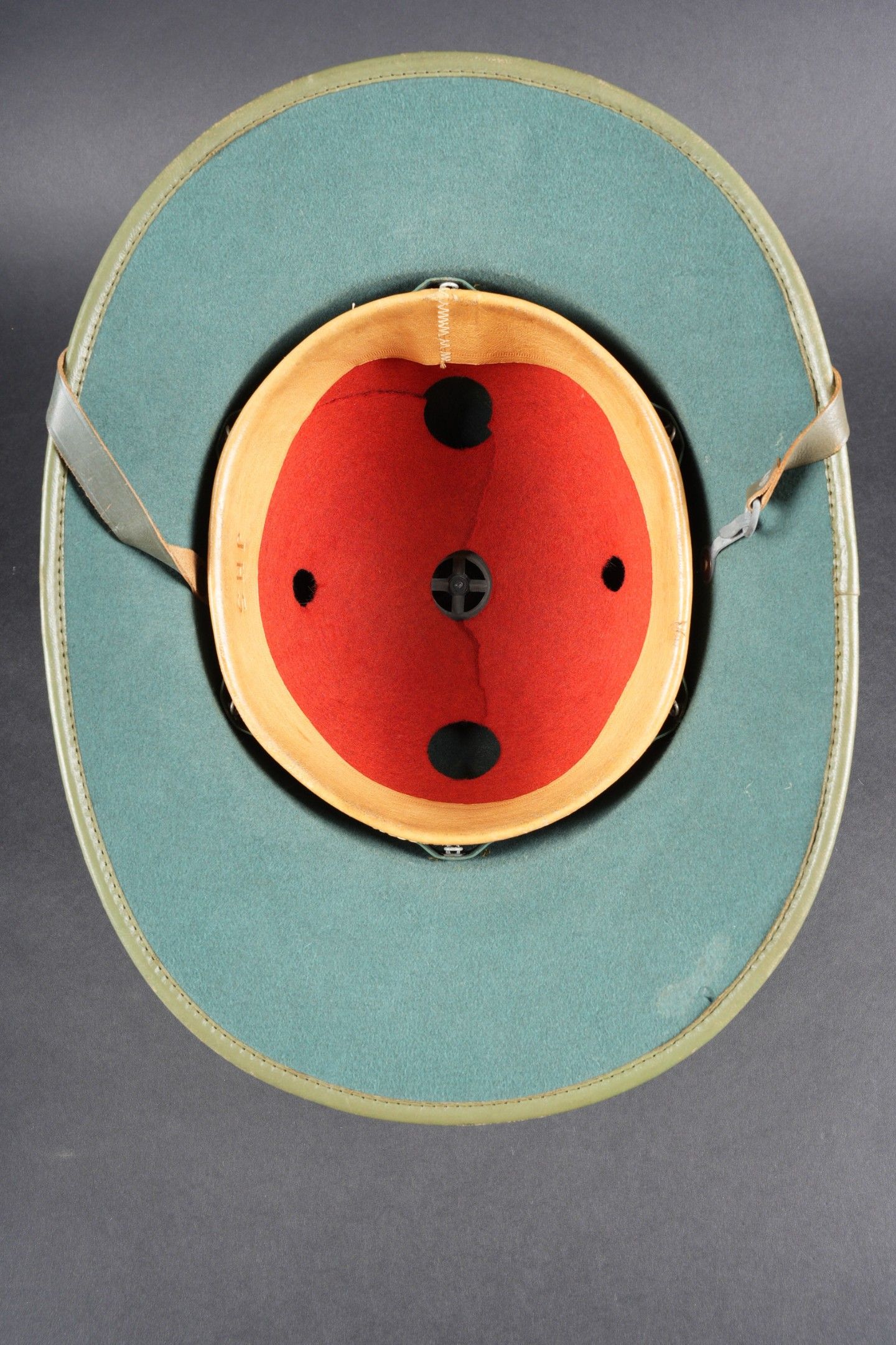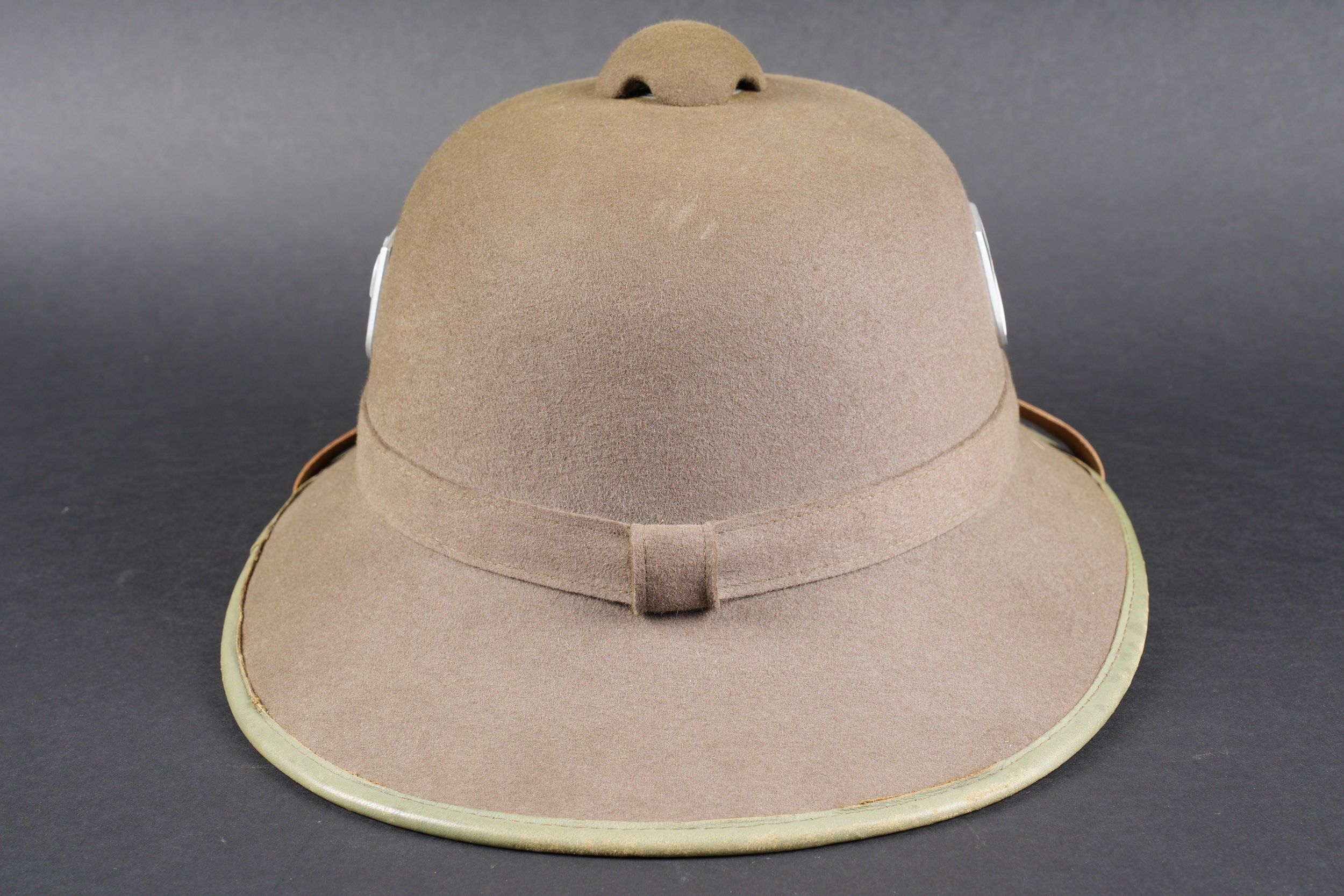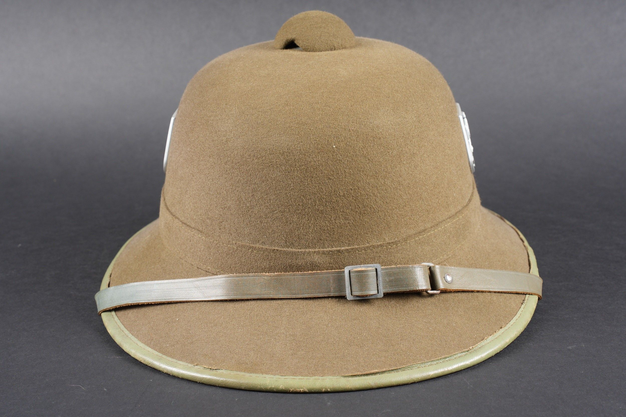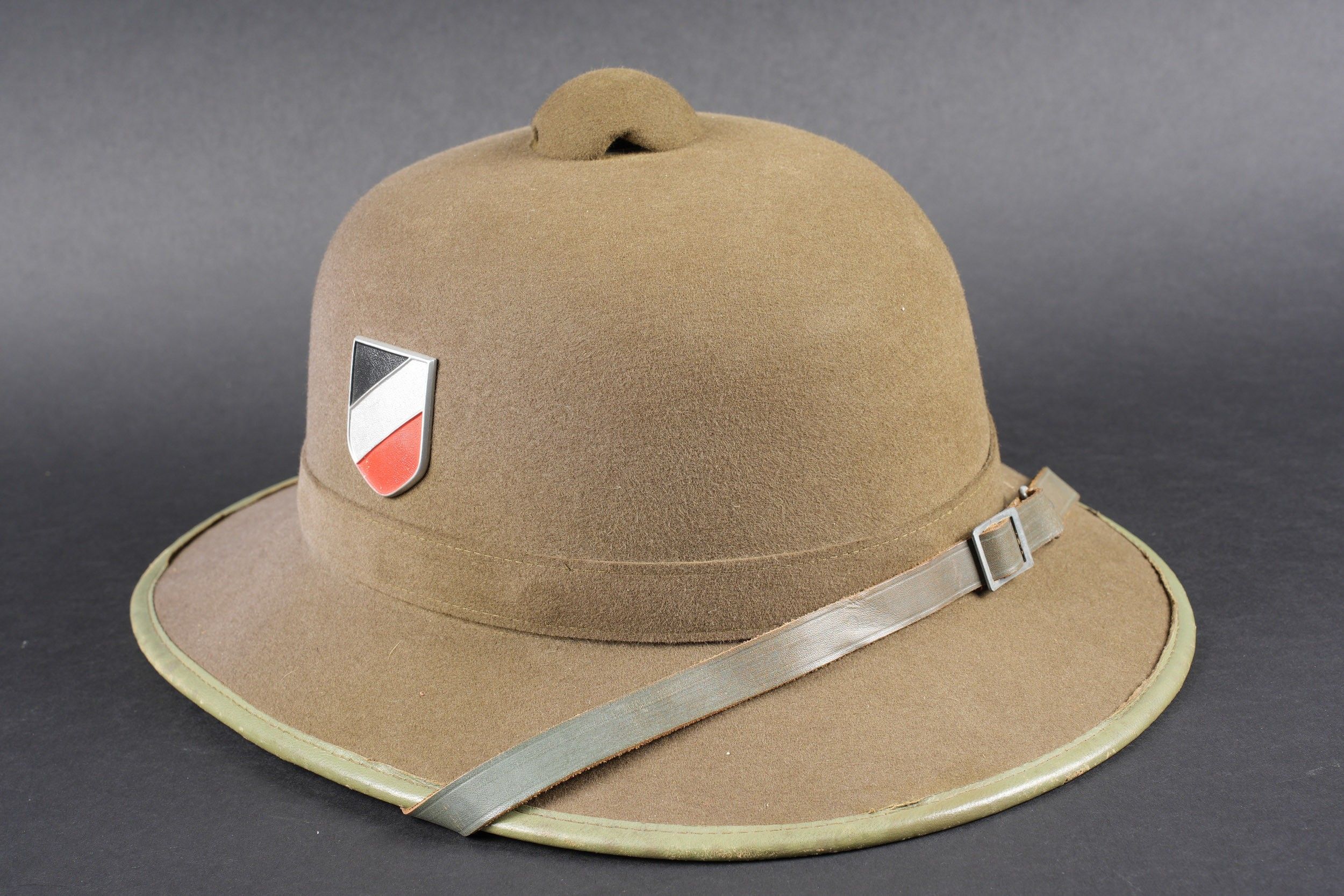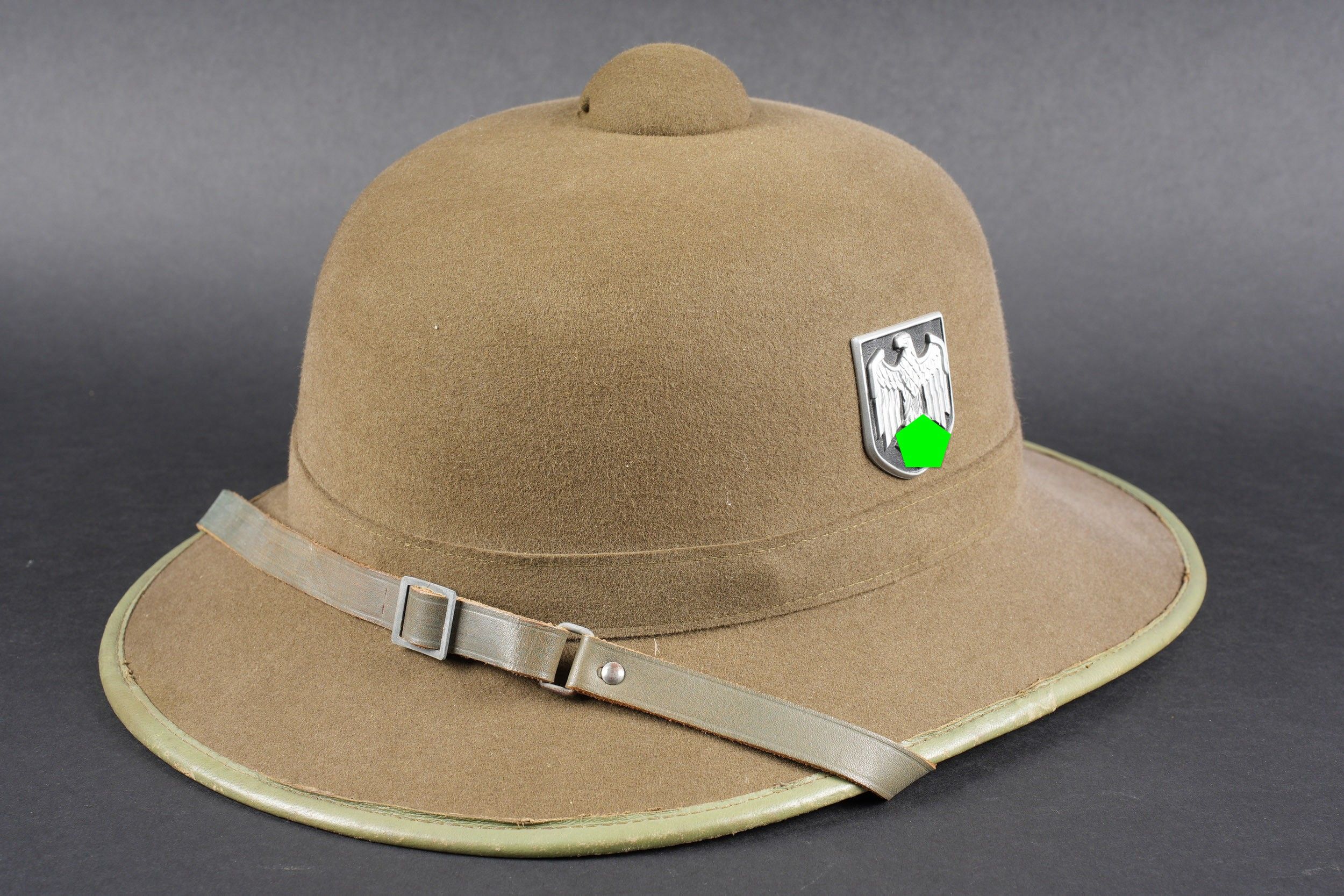 Casque tropical allemand. En feutrine vert olive.