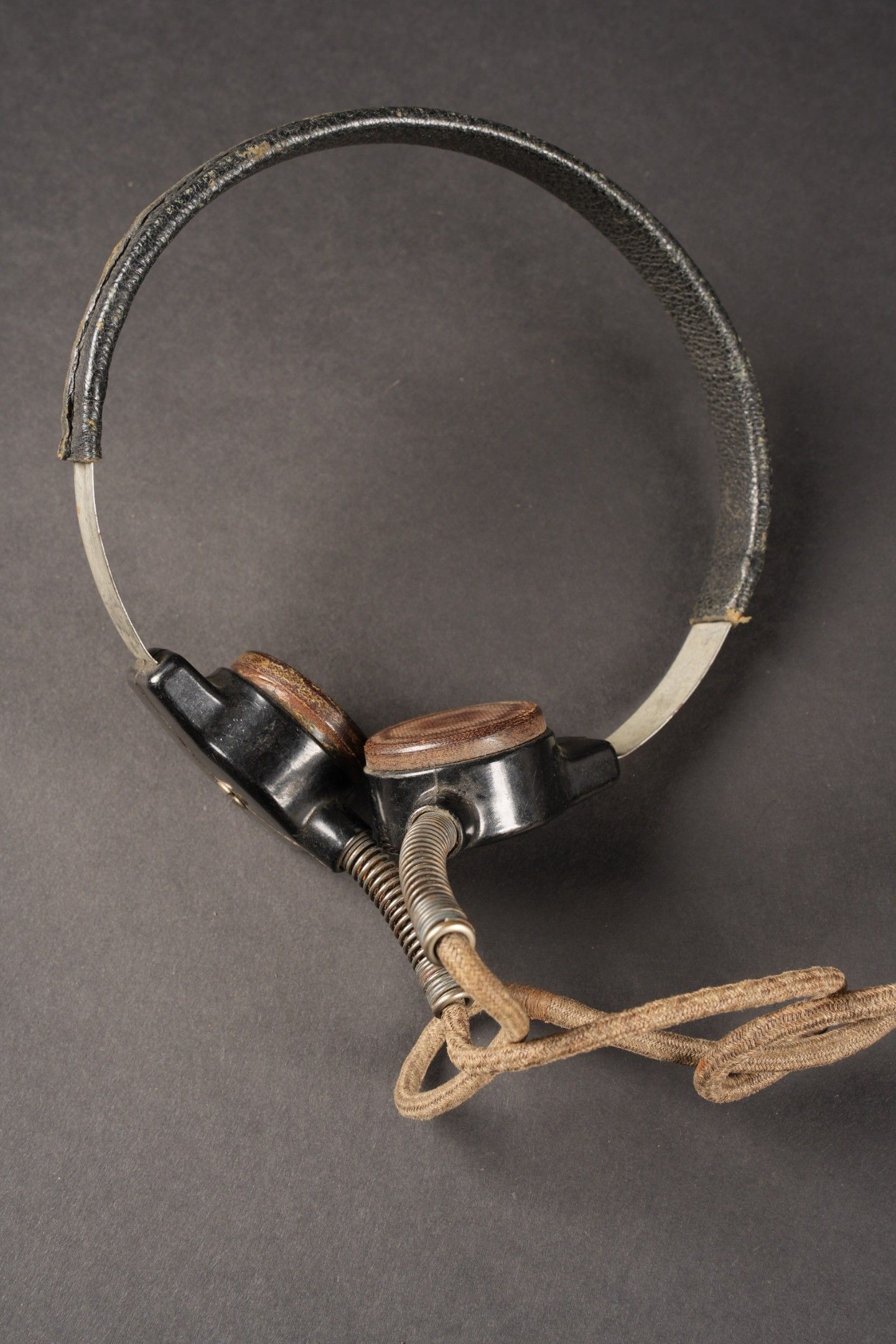 Laryngophone Panzer. Armature en métal, recouverte d'un cuir…