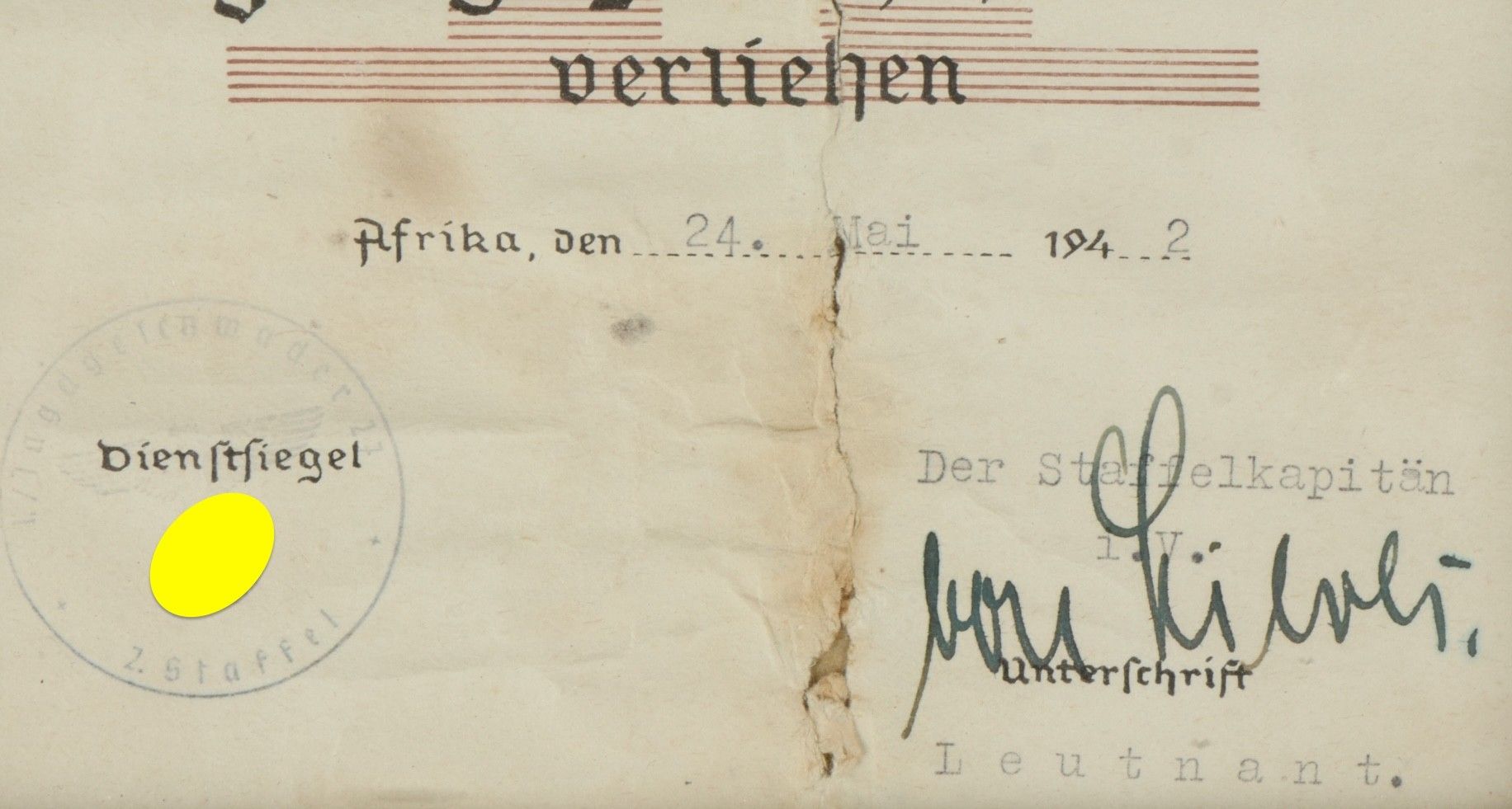 Diplôme de l'Italienisch Deutchen Feldzug in afrika du Ritte…