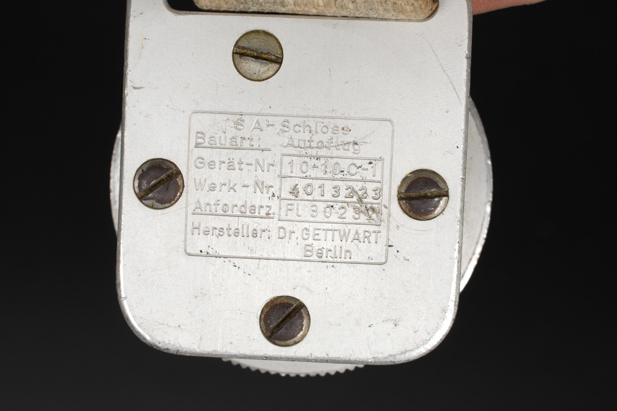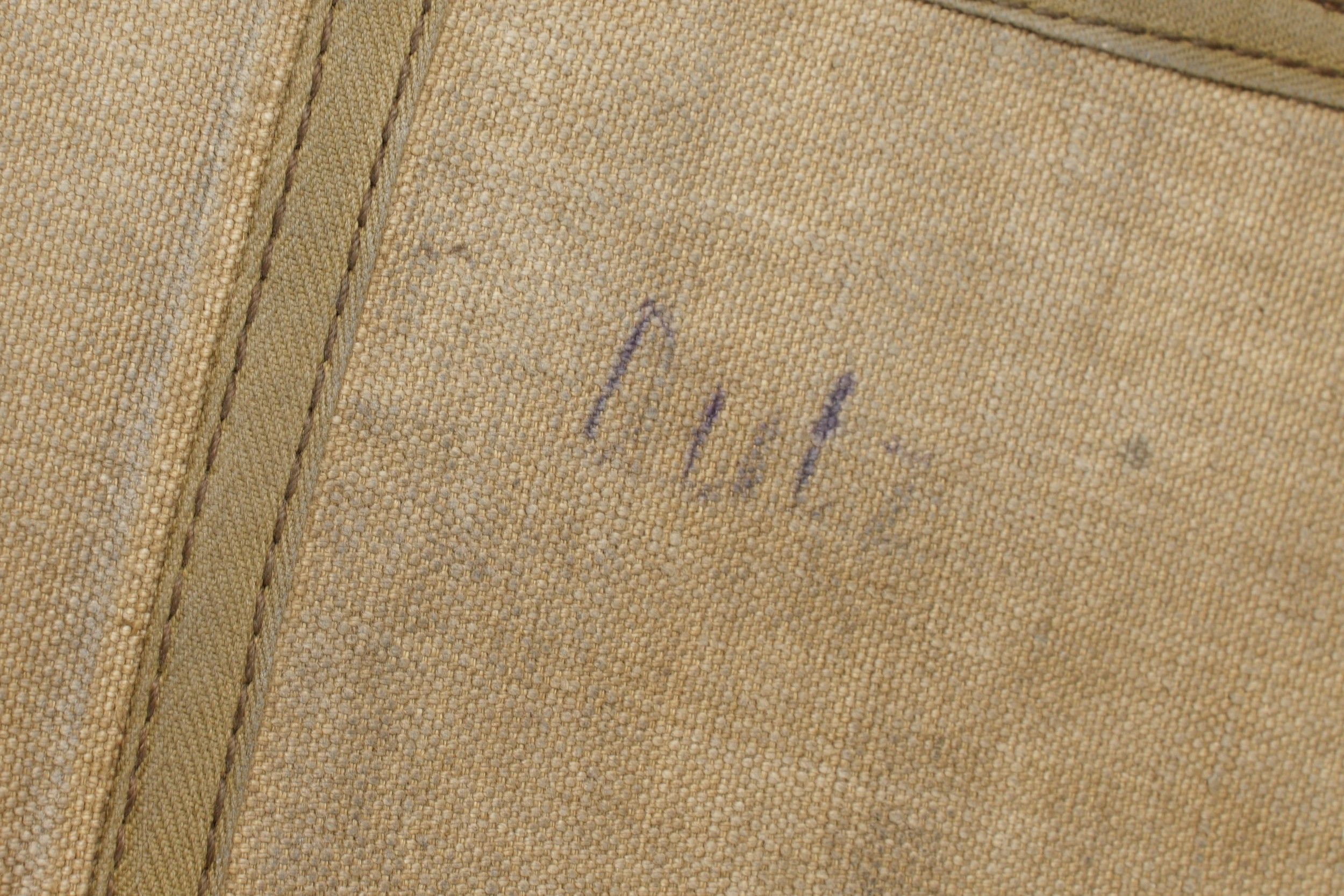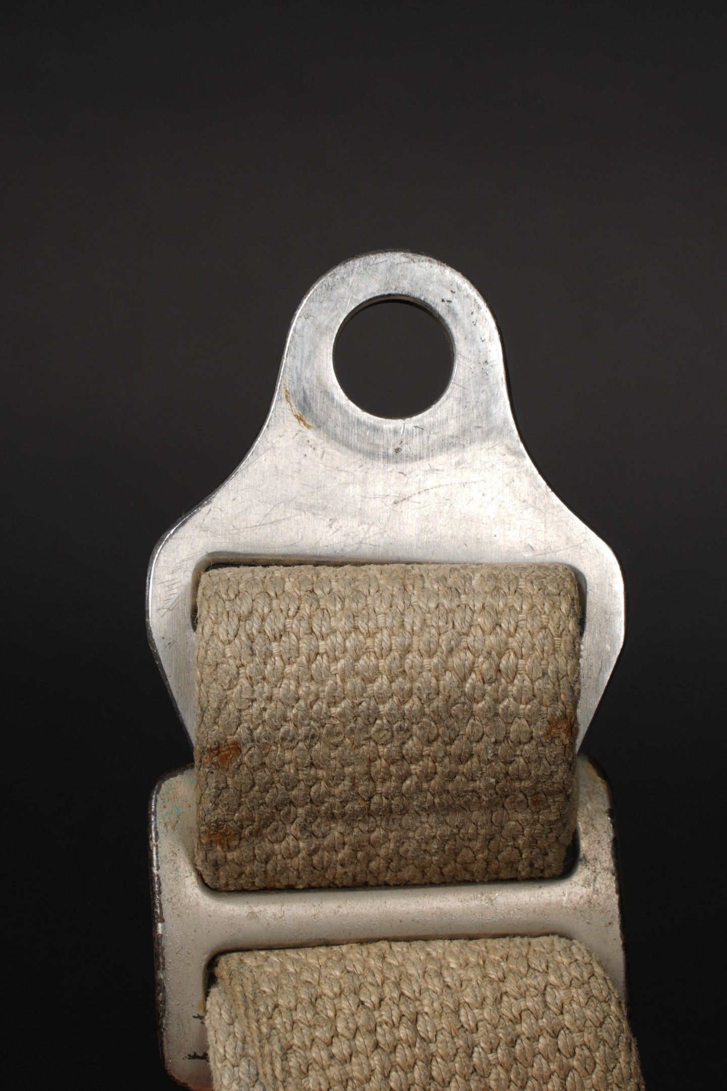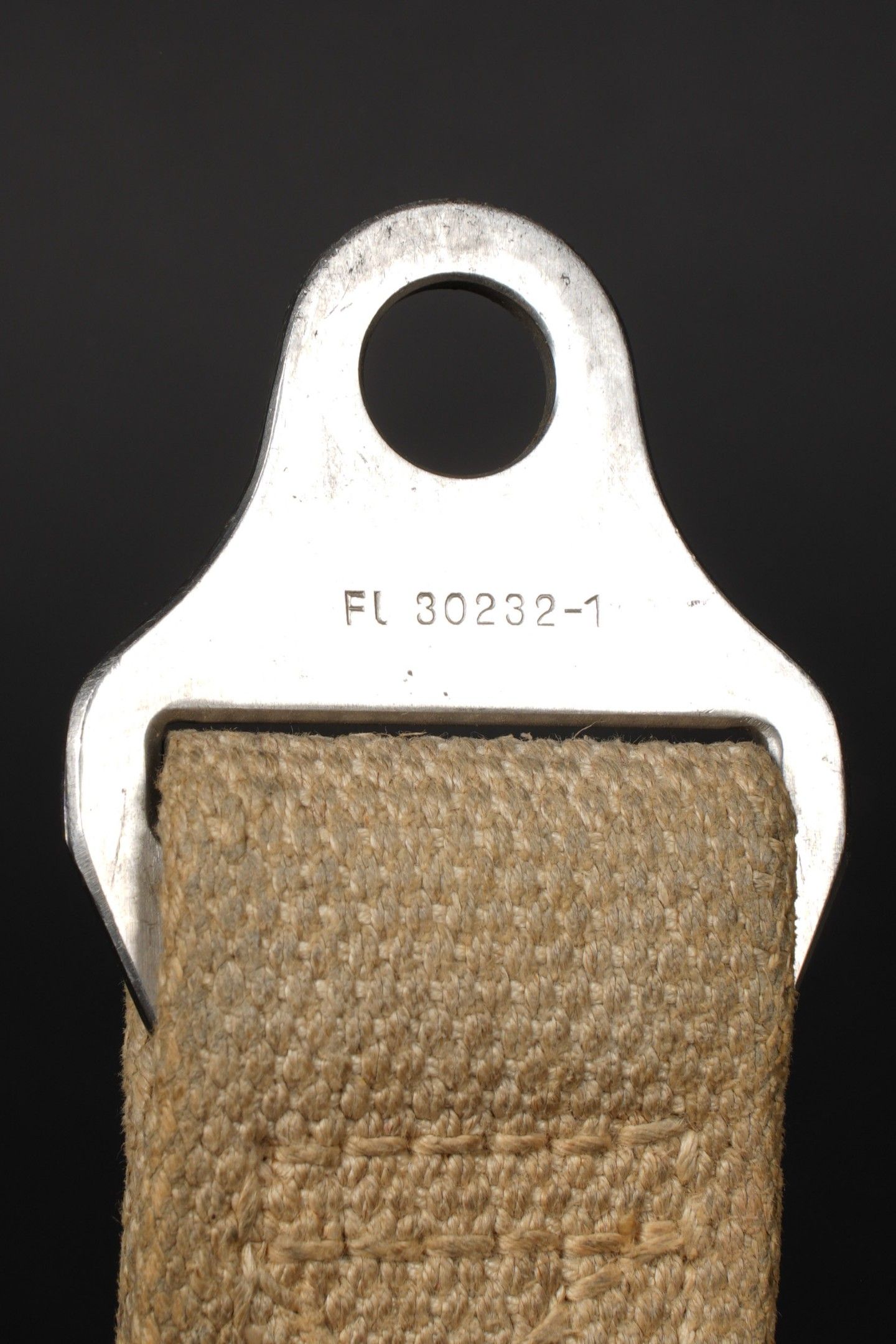 Parachute allemand. Modèle RH 136. Dos de la pièce, formée par une coque en aluminium, en peinture d'origine à 80%. La voilure est absente, ainsi que les suspentes. Sac en toile marron. Tous les élastiques de maintien sont complets. L'étiquette fabricant est absente. Fermeture éclaire complète. Marquages 42 sur le côté. Harnais complet, avec reste de suspentes. Le coussin dorsale est présent. Ceinture en épaisse toile grise, la poignée d'ouverture d'urgence est complète. Boucle marquée DR Gettwart Berlin numéro 4013223 FL 30232. Toutes les parties métallique de fermeture sont marquée FL 30232-1. A noter une certaine usure et patine de la pièce. Etat II+. German parachute. Model RH 136. Rear section made of aluminum shell, retaining about 80% of original paint. Canopy and suspension lines missing. Brown canvas pack. All elastic retaining straps complete. Manufacturer’s label missing. Zipper complete. Marked 42 on the side. Harness complete with remaining suspension lines. Back cushion present. Thick grey webbed waist belt with complete emergency release handle. Buckle marked DR Gettwart Berlin No. 4013223 FL 30232. All metal fittings marked FL 30232-1. Shows typical wear and patina. Condition II+.