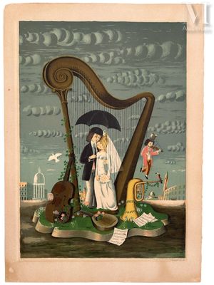 Raymond PEYNET (1908/1999) Les mariés sous le parapluie