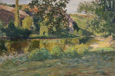 Ecole CONTEMPORAINE du XXème siècle Arbres et barque dans un…