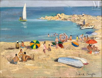 Irène PAGES (Née en 1934) Plage à Cap d'Ail