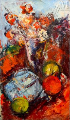 Bension ENAV (1925-2007) Bouquet de fleurs et fruits Huile s…