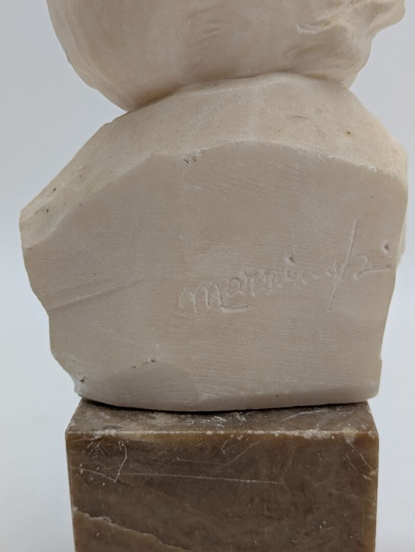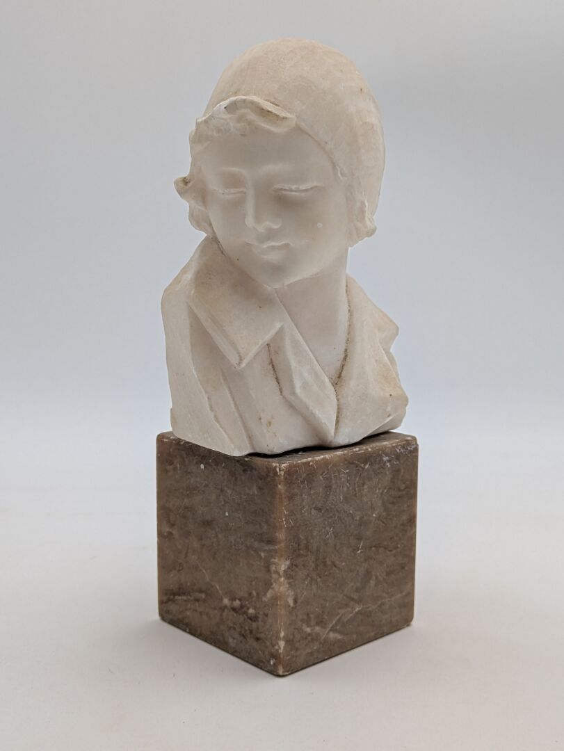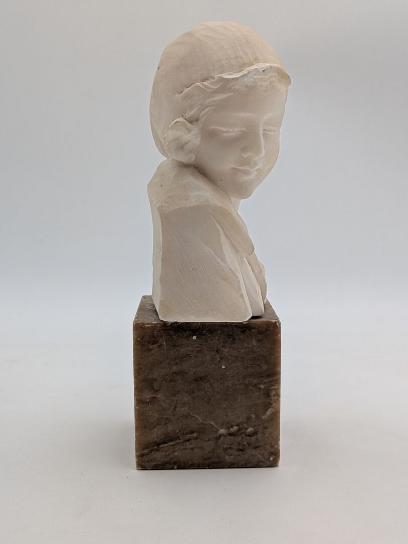 Buste de jeune fille en albâtre, signé au dos. Début XXe siè…