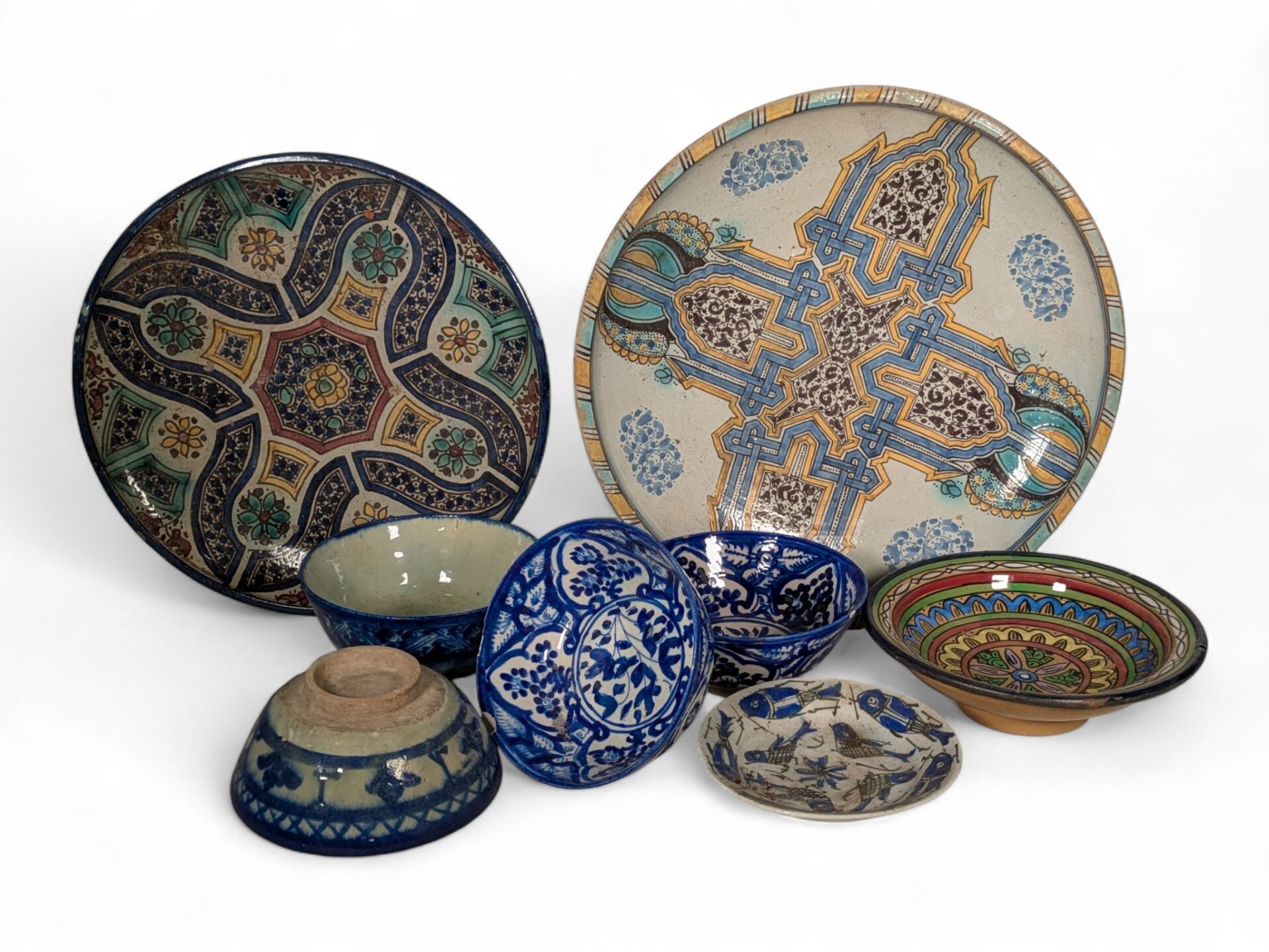ORIENTALISME réunion d'assiettes, de bols et de plats en faïence.