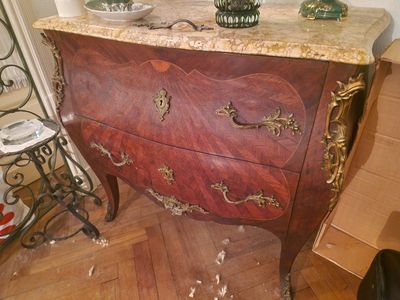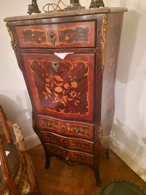 Ces ventes de meuble ancien, du Moyen-âge à l'avènement de l'Art nouveau, explorent la diversité et la richesse de la menuiserie et de l'ébénisterie : coffre médiéval, cabinet Renaissance, bibliothèque, secrétaire, bureau plat, vitrine, semainier... Certains sont agrémentés de marqueterie Boulle ou placages de bois précieux (acajou, amarante, etc.), d'ornements de bronze ou de plateaux en marbre, que ces meubles d’occasion et expertisés soient estampillés ou non. Au chapitre des sièges, fauteuils, bergères, canapés et chaises compléteront vos salons, tandis que les consoles, guéridons et encoignures finiront d'agrémenter votre ameublement. Le mobilier des XVIIIe et XIXe siècles est entre autres au cœur de ces ventes, notamment avec l'incontournable commode Louis XV. Si le rocaille n'est pas à votre goût, vous trouverez sans difficulté du mobilier d'époque et de style Transition ou Louis XVI, Directoire, Empire, Louis-Philippe, Napoléon III, de même que toutes les réinterprétations du XIXe siècle, les meubles d'inspiration néo-gothique, extrême-orientale... Enfin, le mobilier de port et régionaliste complète ce panel de possibilités.