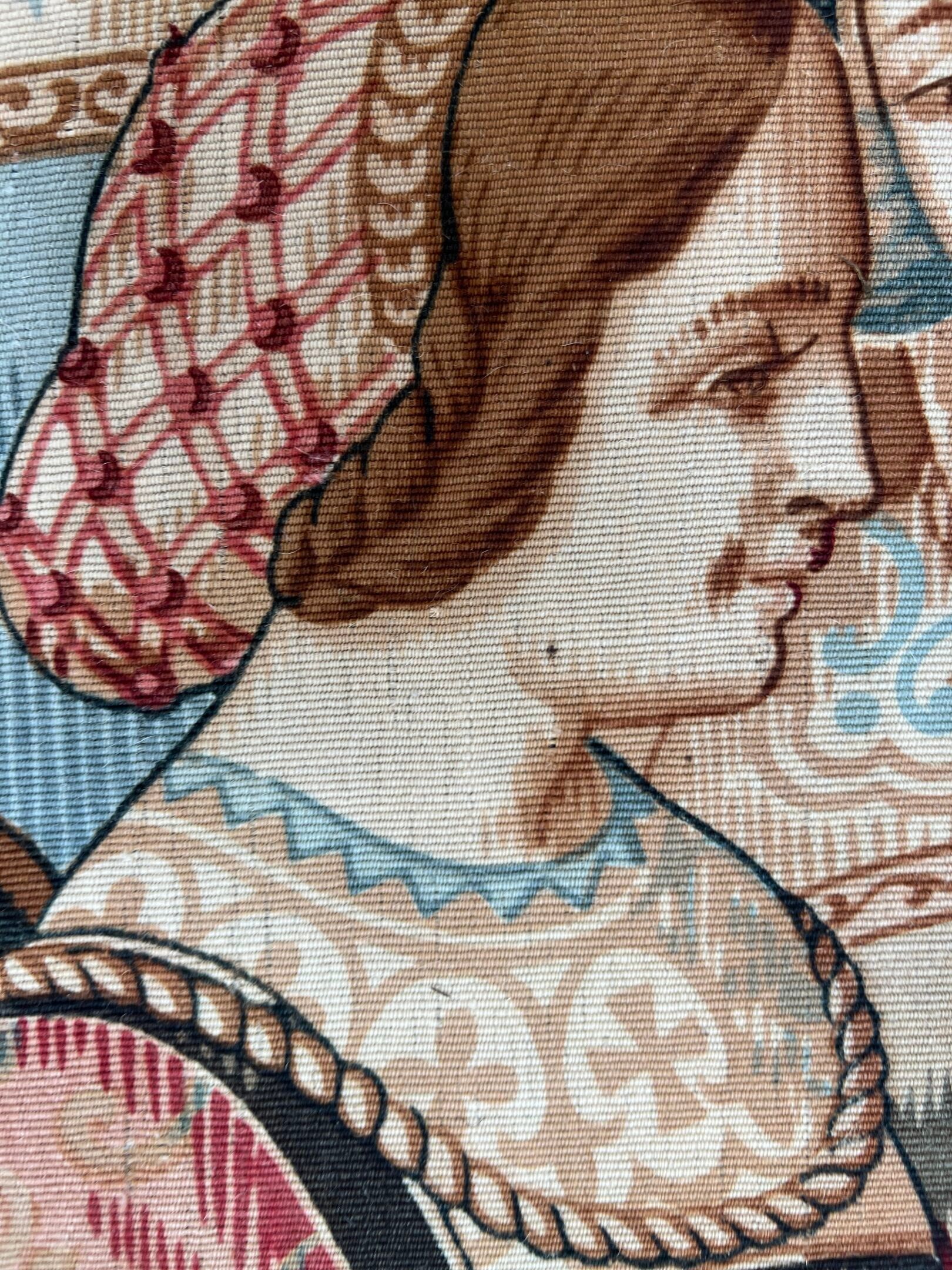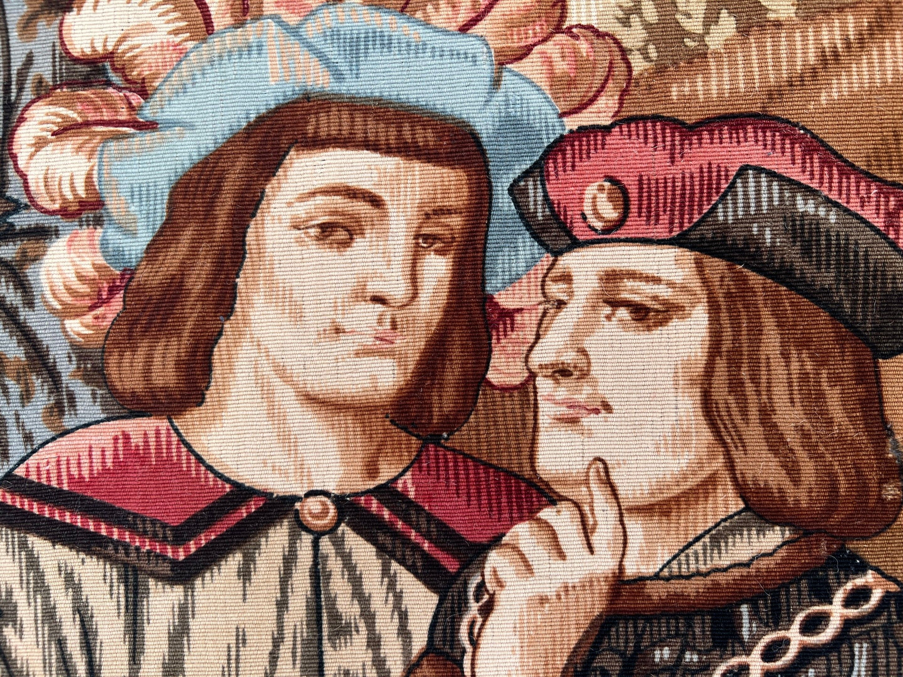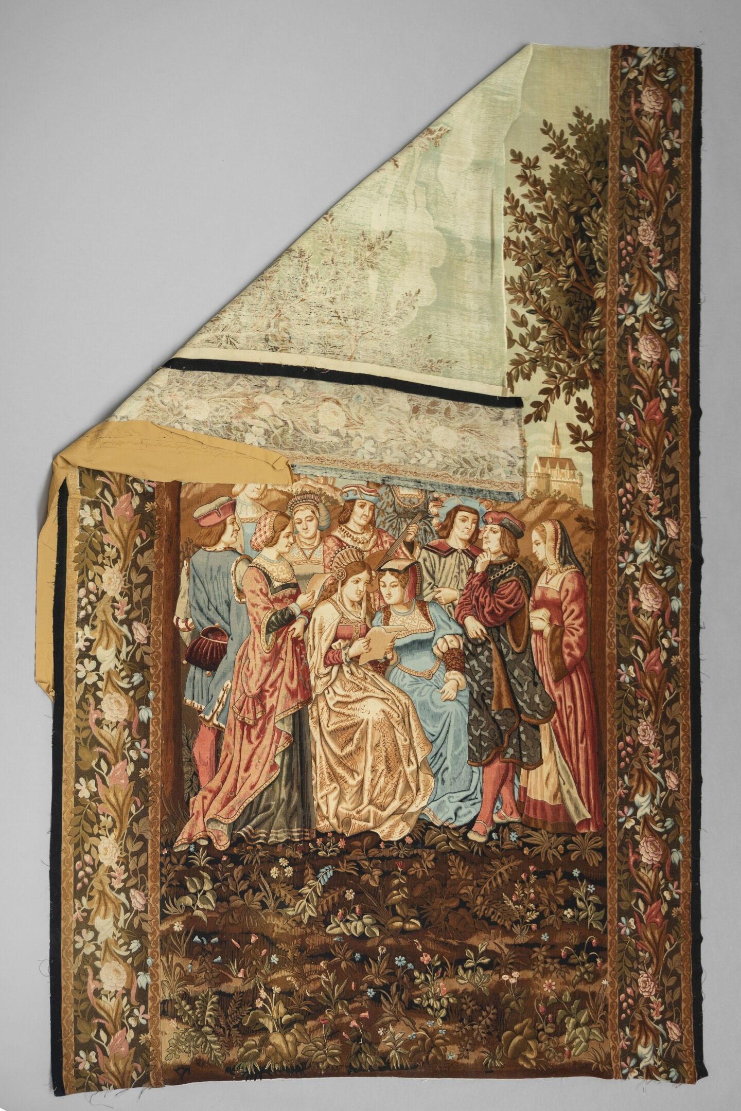 Paire de panneaux de tapisserie imprimée dans le goût médiéval, probablement Alsace, vers 1880-1900