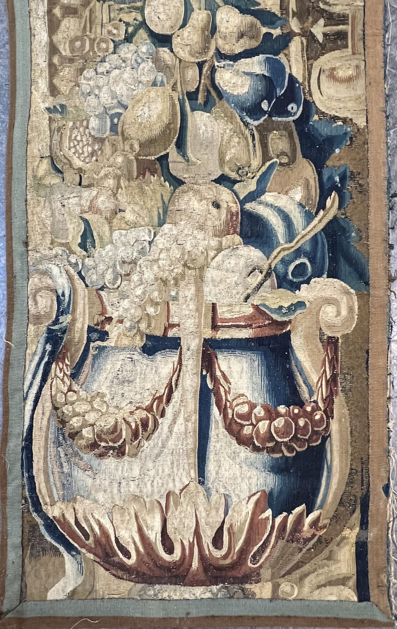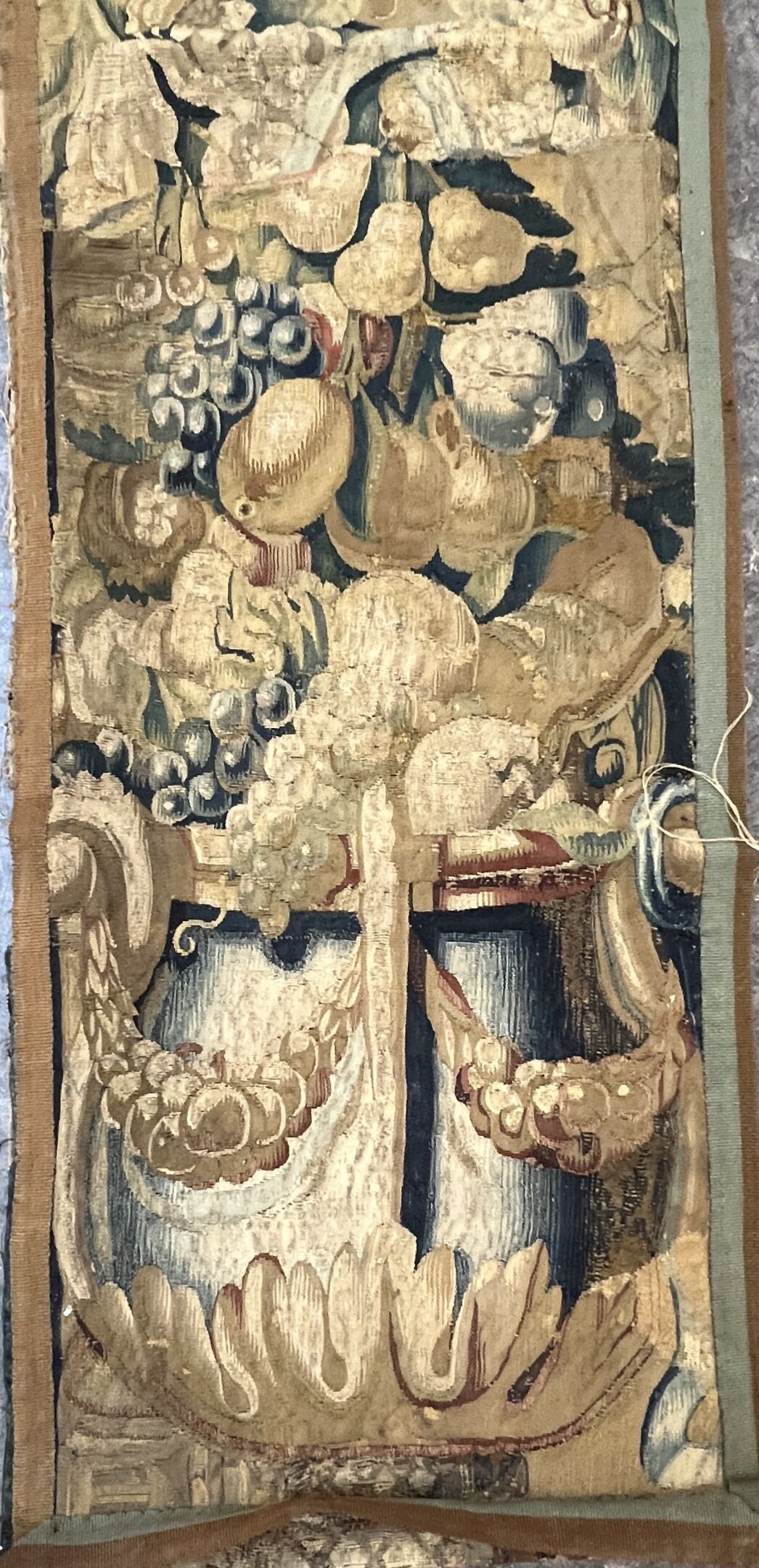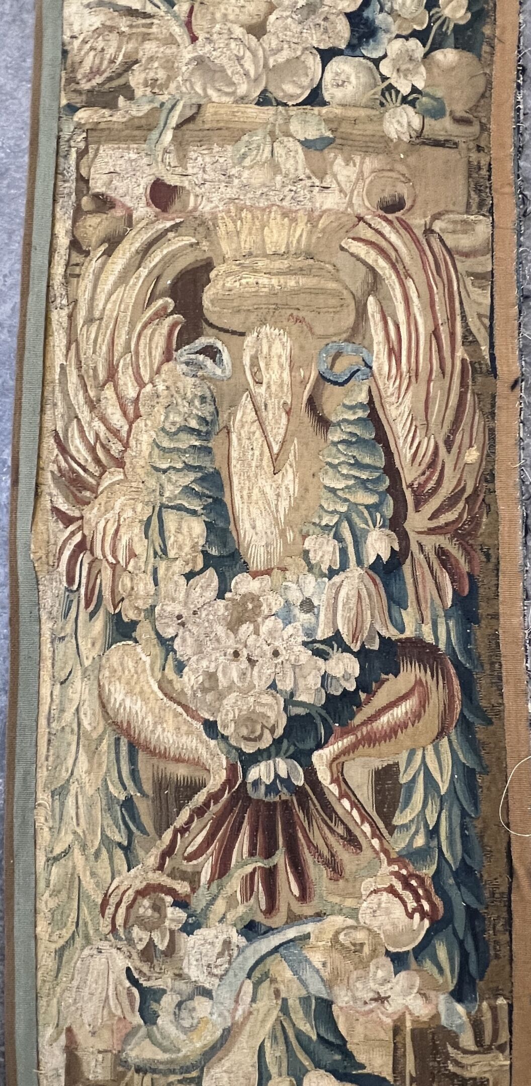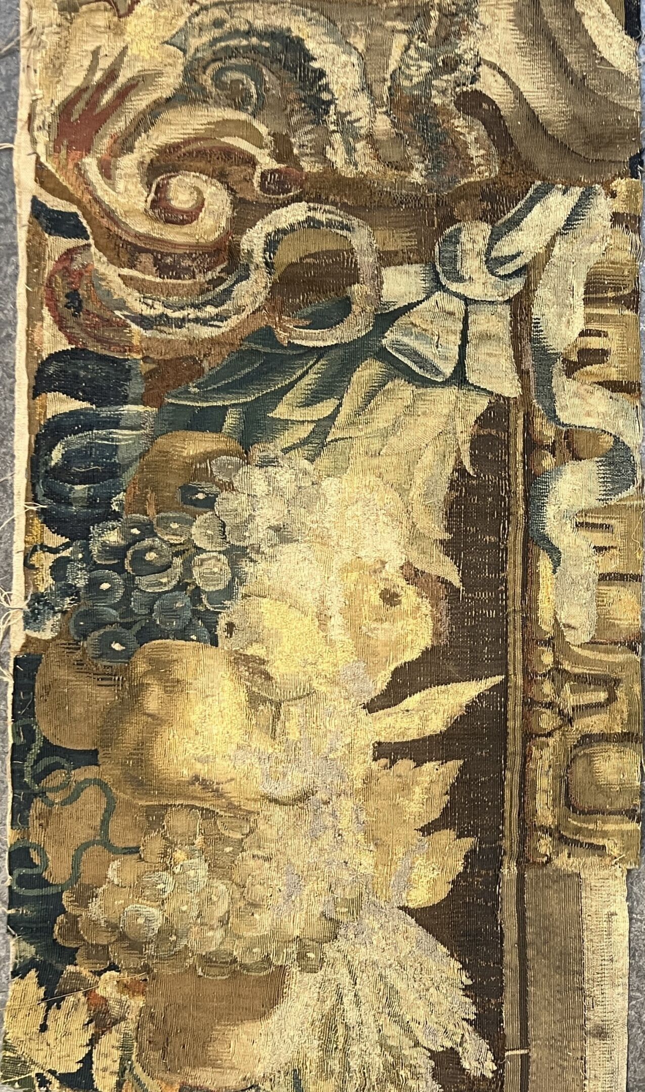 Provenance : ces bordures sont identiques à celles des quatre tapisseries de la tenture conservée dans le grand salon au Château de Vizille dont elles proviennent. Acquises avant 1984.