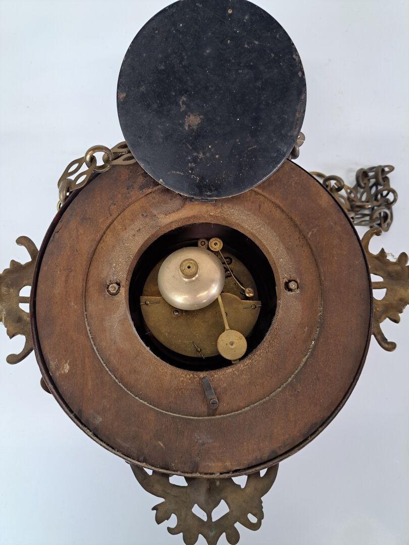 Pendule à suspendre dite boulangère en bronze et tôle émaill…