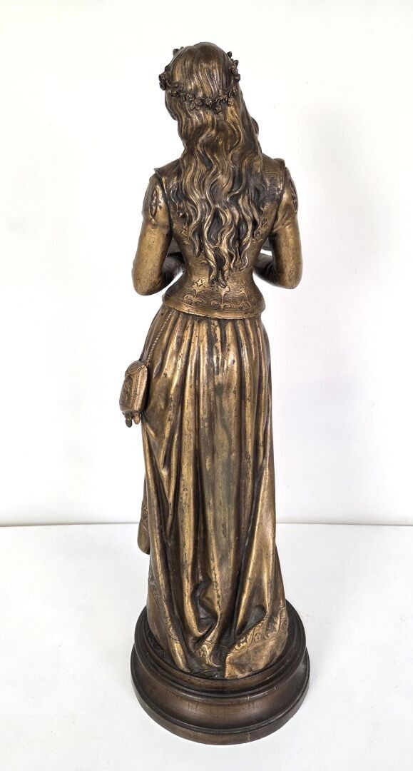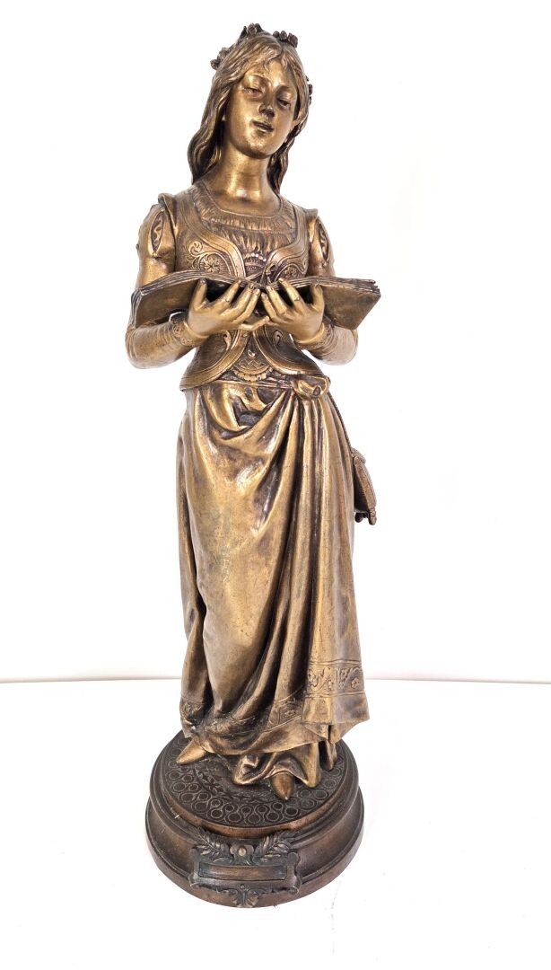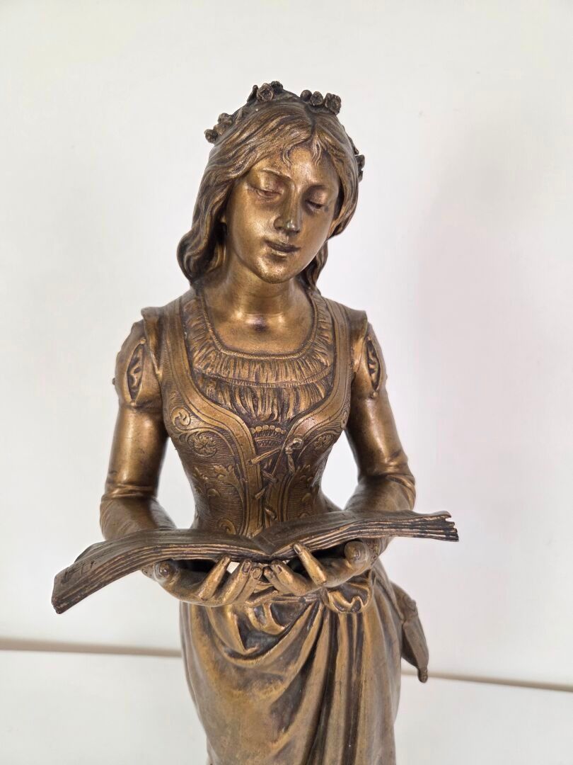 Jean Didier DEBUT (1824-1893) - La liseuse, bronze à patine médaille représentant une jeune femme debout, en costume Renaissance, tenant un livre ouvert. Signé sur la base.