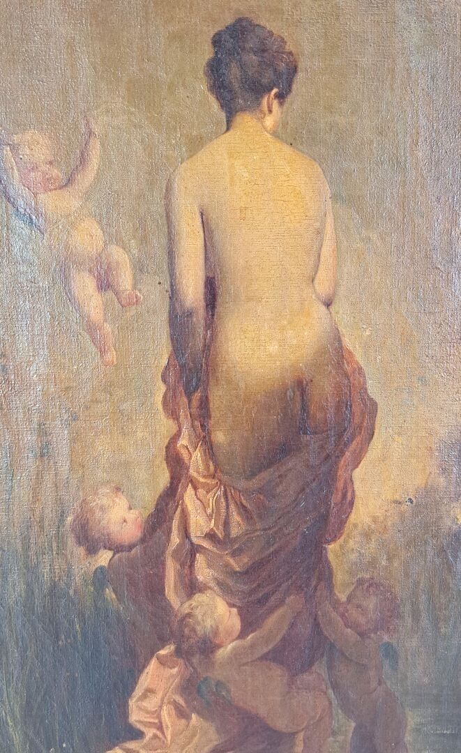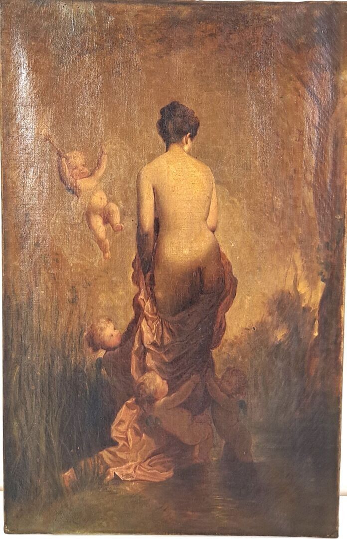 CHAPLIN Charles Josuah (1825-1891). Femme nue de dos, huile sur toile, signée en bas à gauche, 52 x 33 cm