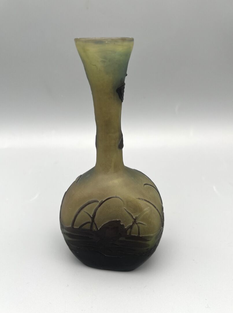 GALLE - Vase en verre multicouche dégagé à l'acide à décor d…