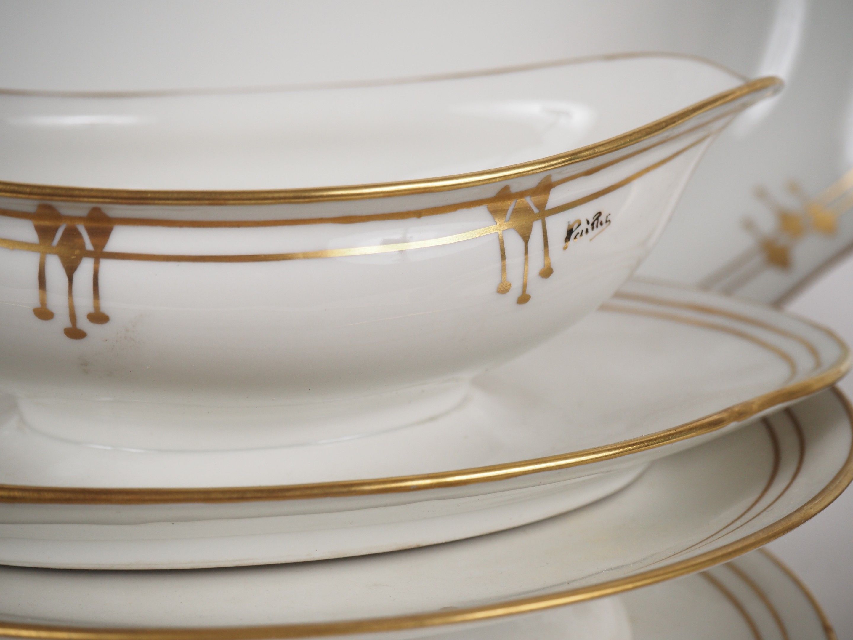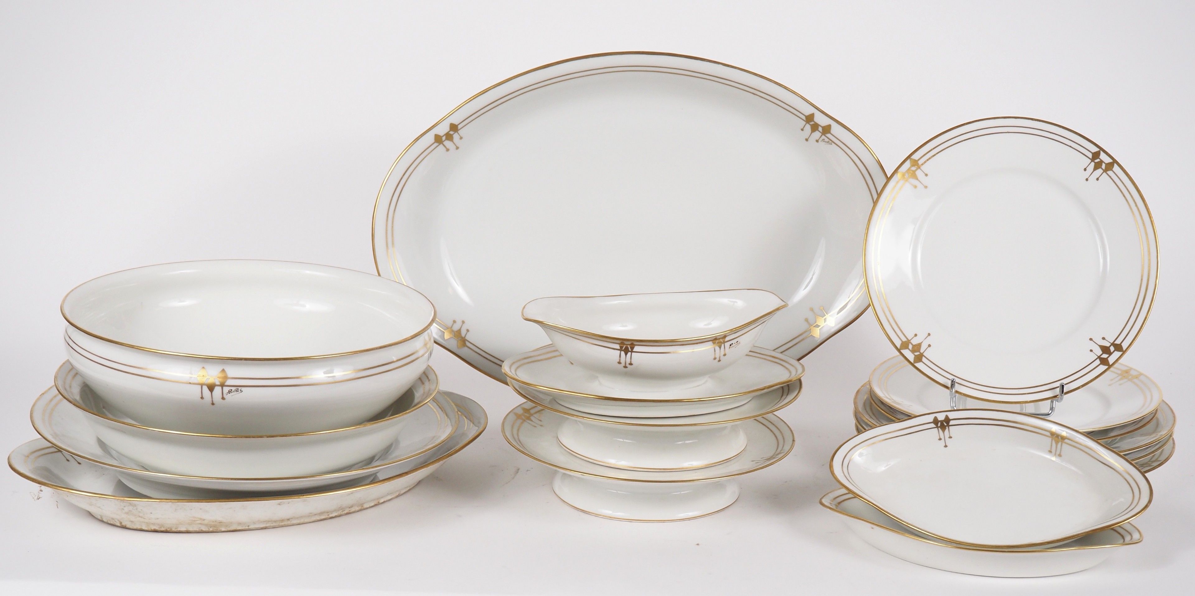 Partie de service de table en porcelaine à décor doré de style Art Déco.