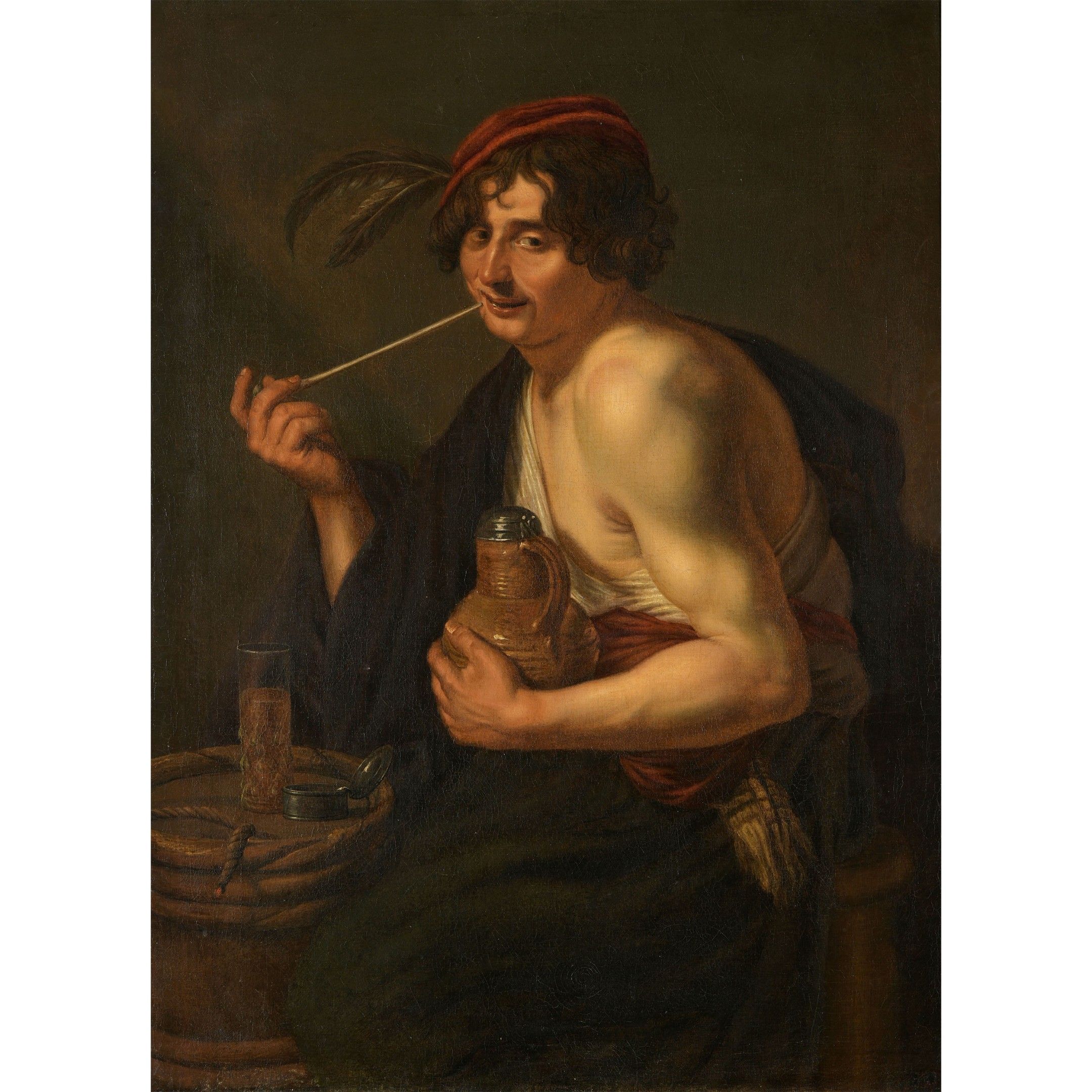 ECOLE EUROPEENNE DU XVIIème SIECLE Jeune fumeur attablé Toile 112 x 82 cm