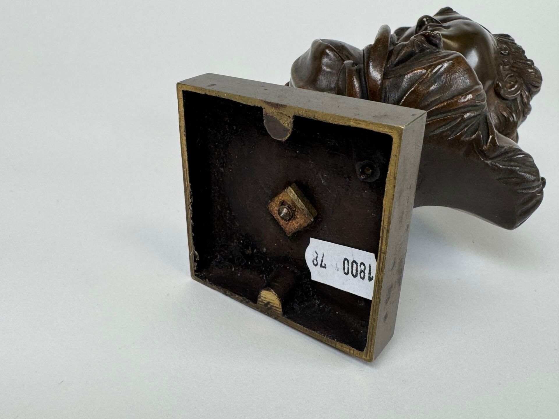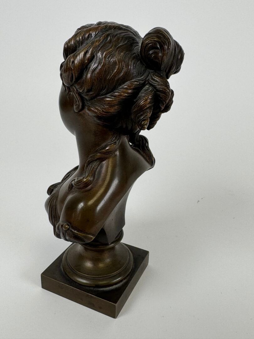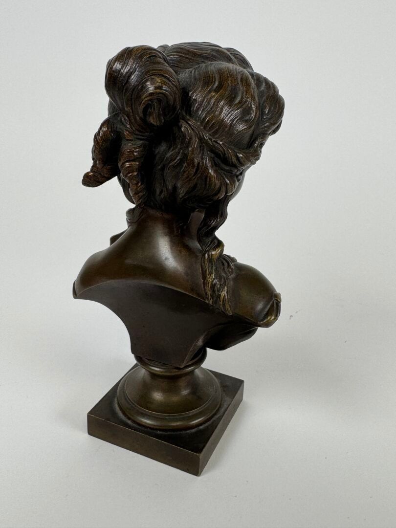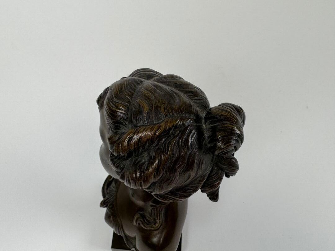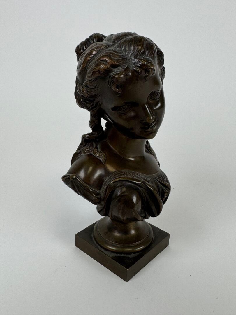 École, XXe. Buste de femme. Petit sujet en bronze patiné.