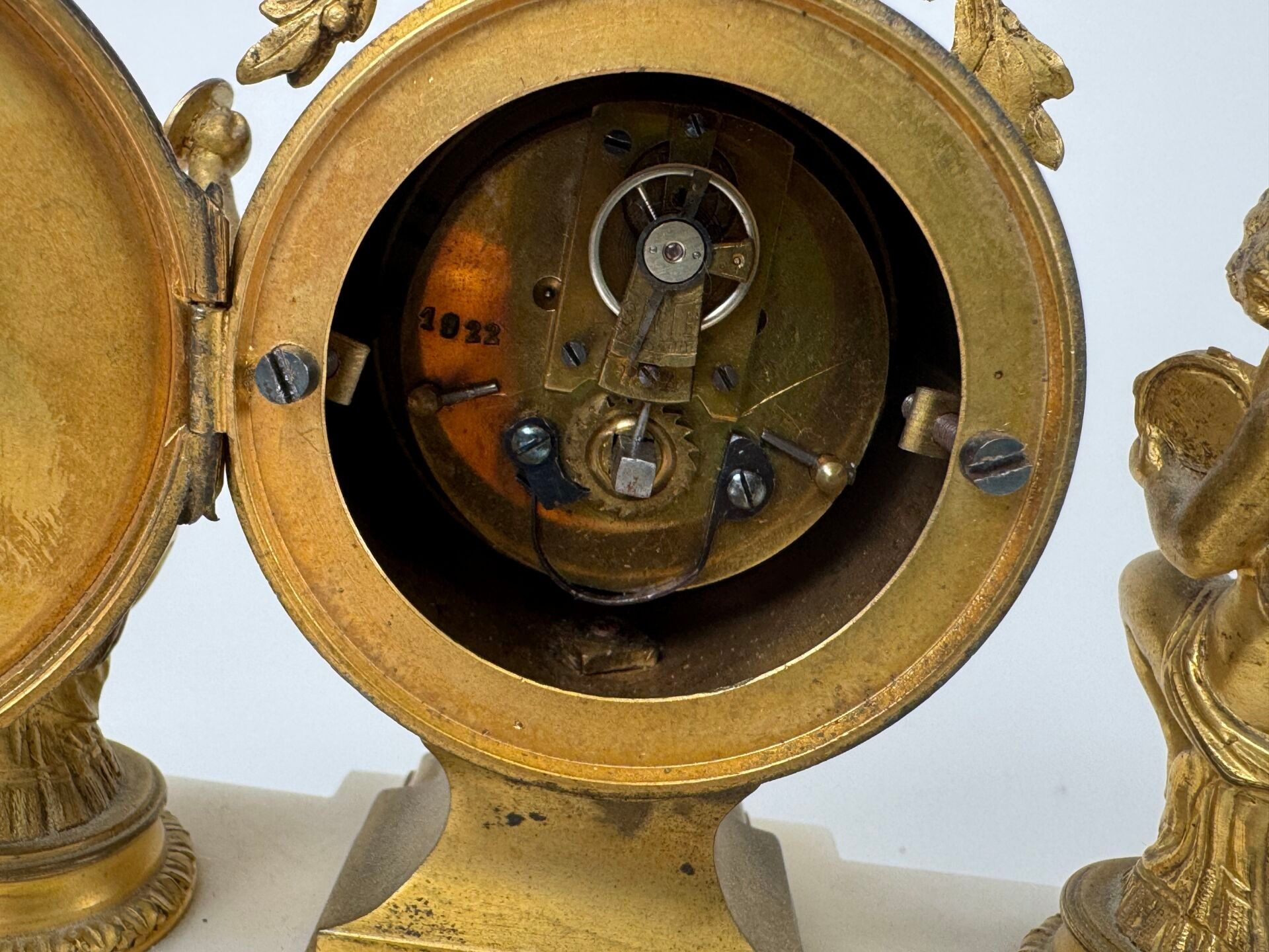 Petite pendule en bronze doré et albâtre à décor de deux Amo…