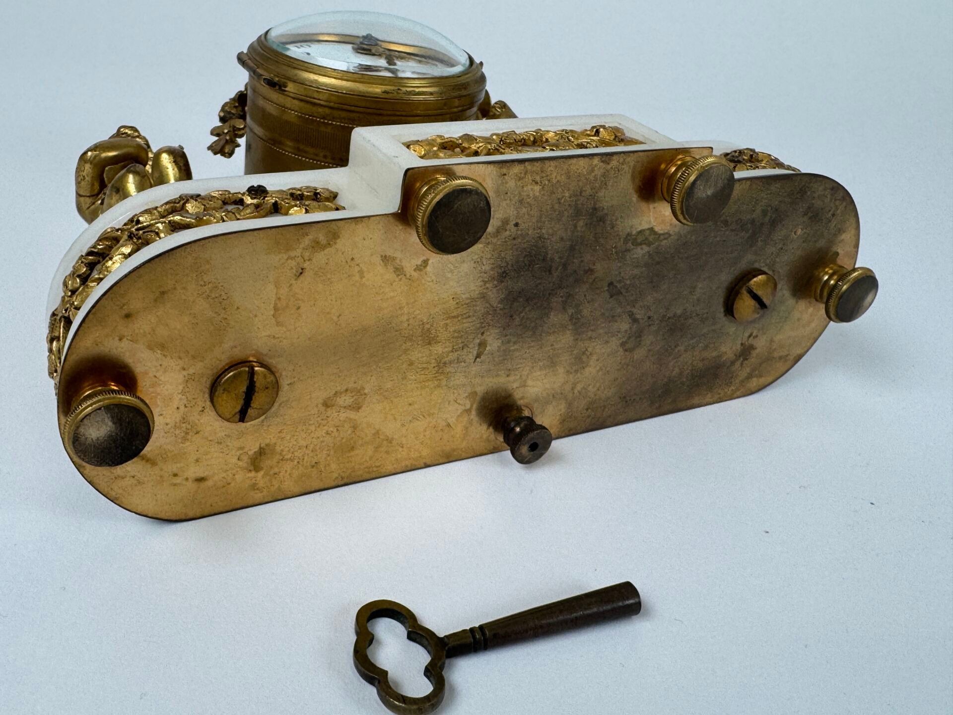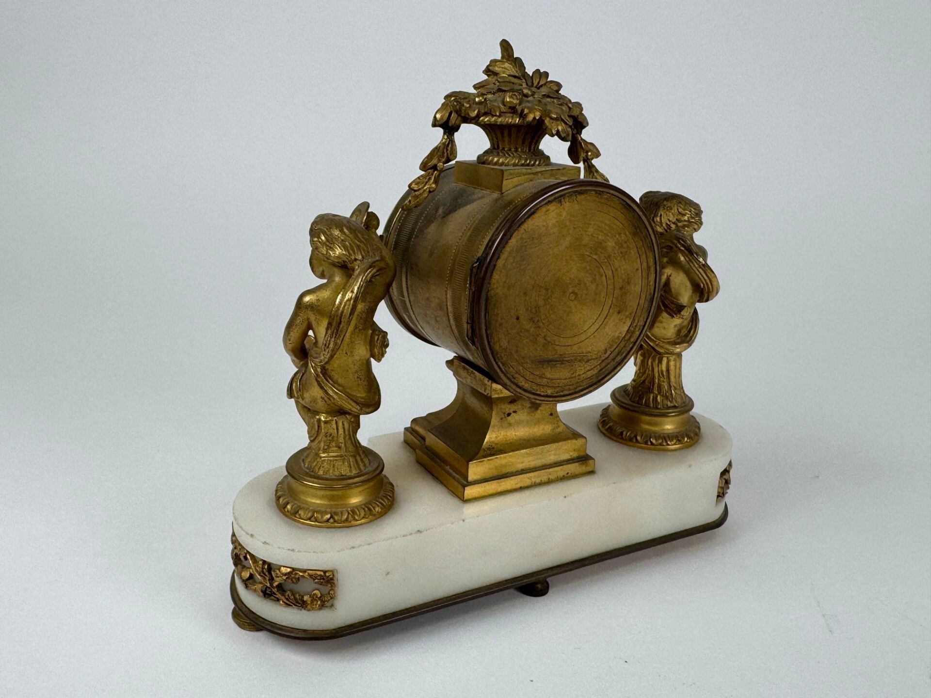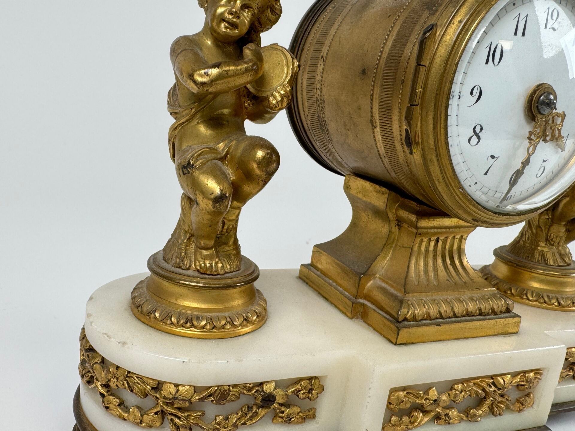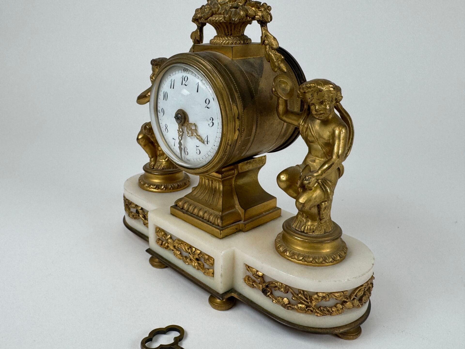 Petite pendule en bronze doré et albâtre à décor de deux Amours Musiciens.