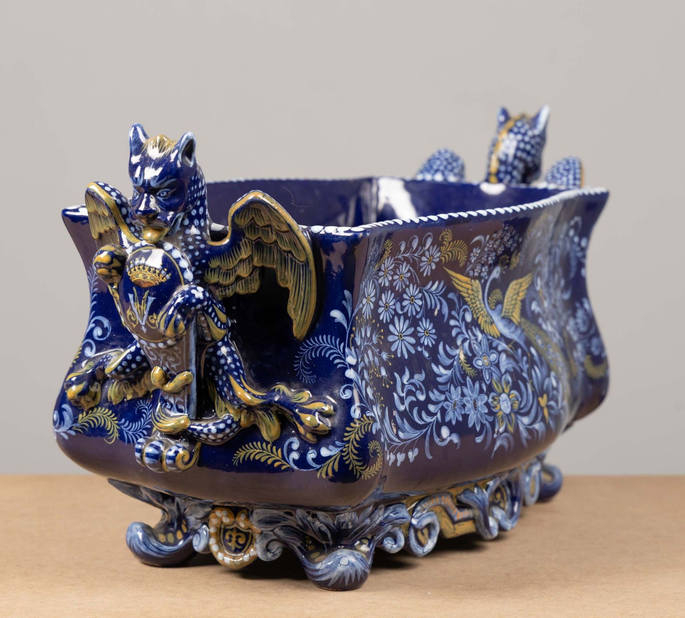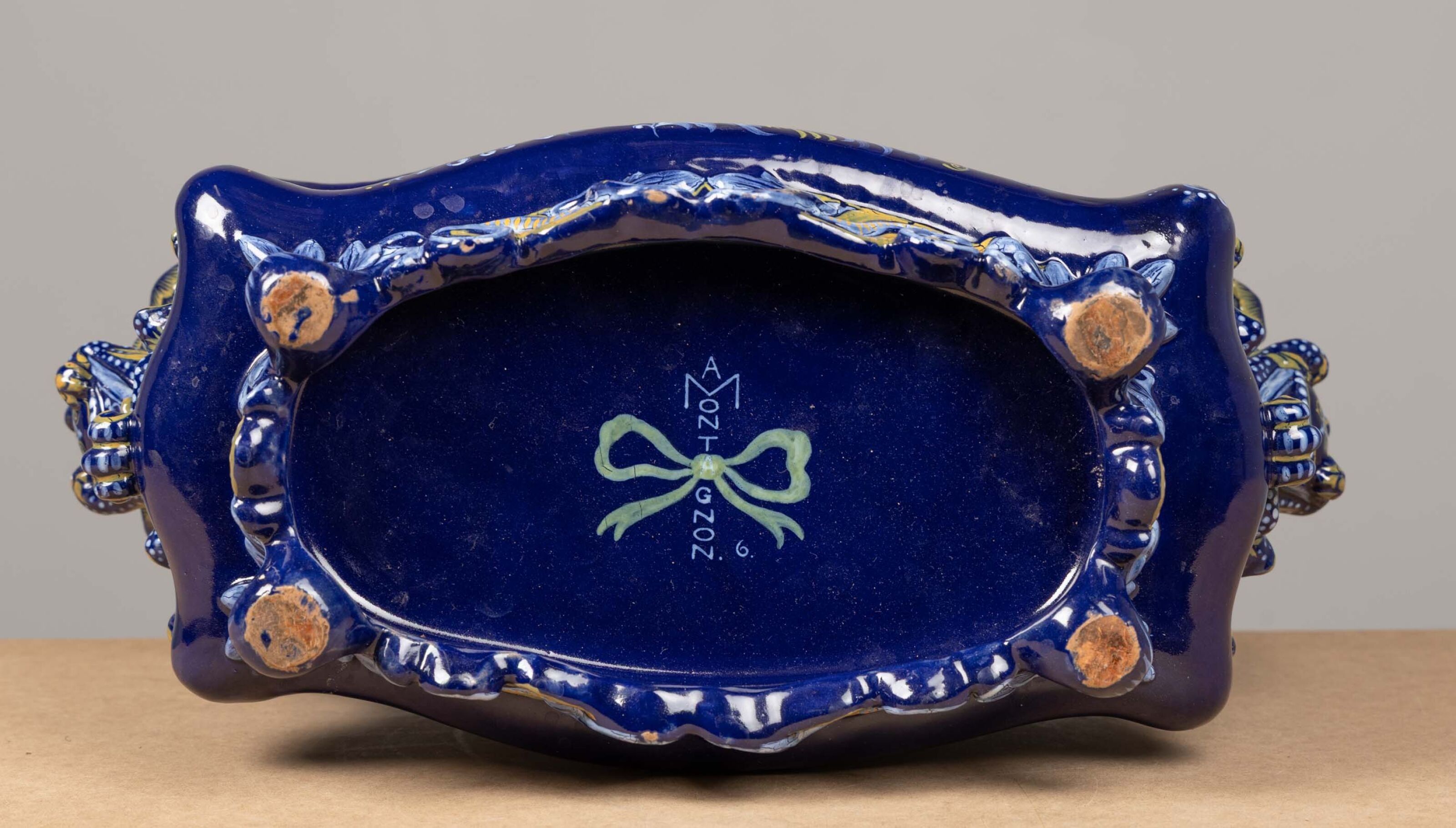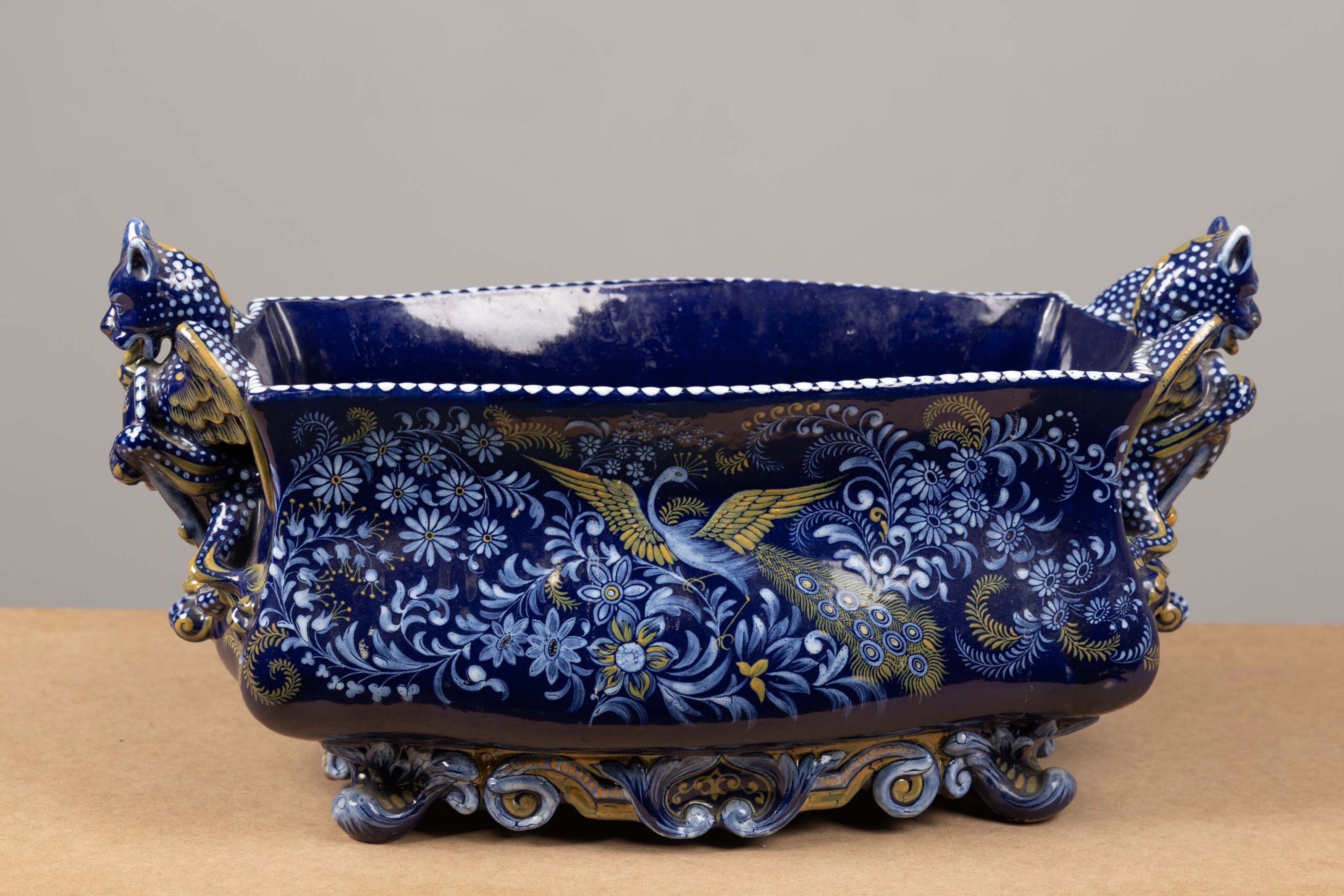 NEVERS, Antoine MONTAGNON Jardinière en faïence décor en bla…