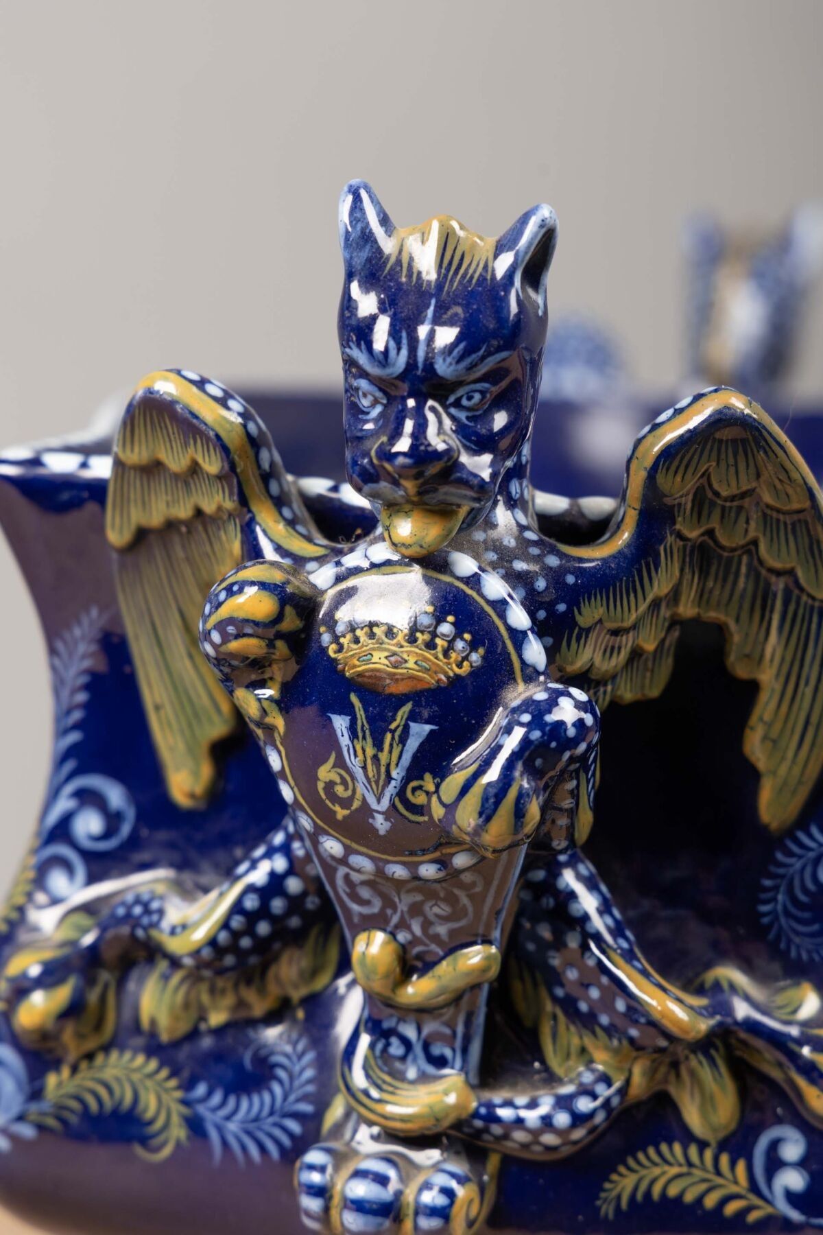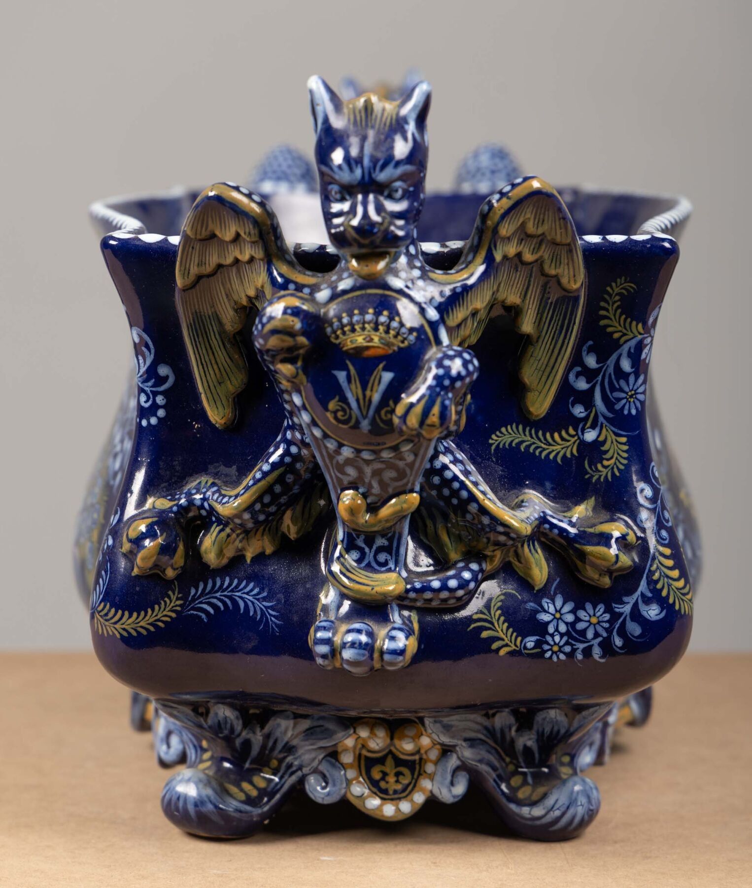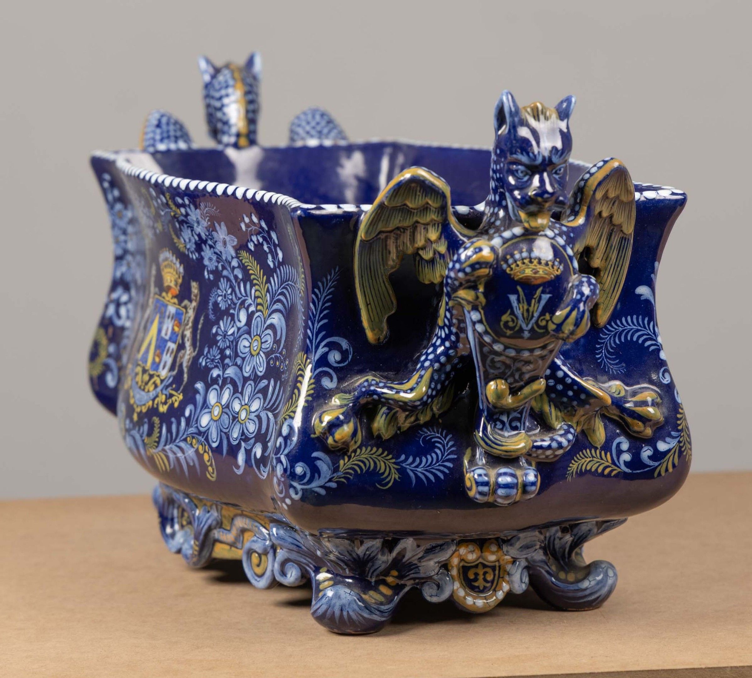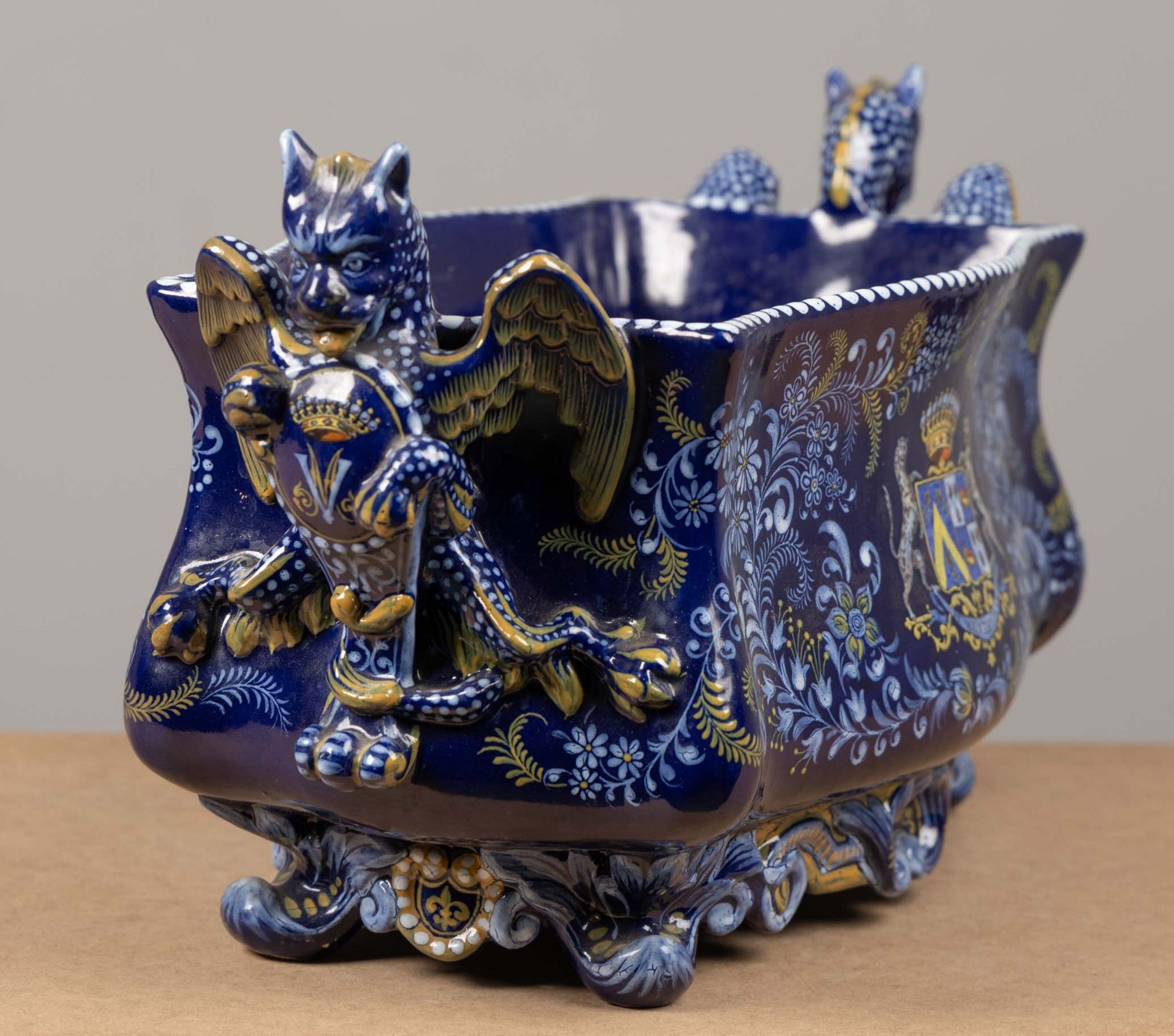 NEVERS, Antoine MONTAGNON Jardinière en faïence décor en bla…